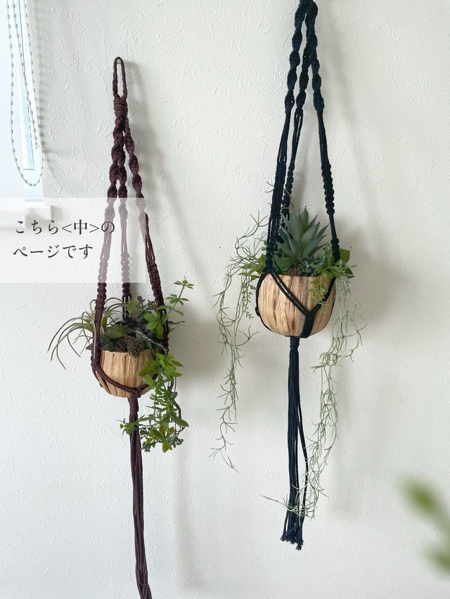 手軽に飾れて手間もかからない 「部屋がオシャレに明るくなる」と大好評のマクラメハンギンググリーン 新デザインです。 【①爽やかロング】のページです。 ②爽やかロングのページは↓ https://fkaren.base.shop/items/99672571 *マクラメとポットアレンジのセット。 お部屋にグリーンがあると、目に優しく、心が落ち着く作用があります。 アレンジもマクラメも、細部まで丁寧に作り上げた、特別リアルなフェイクグリーンをお試しください。 <<飾り方>> ・大変軽いため(マクラメ含めて約190g)、画びょうひとつで吊るせます。 ・鴨居フックに掛けたり、壁にも飾れます。 ・水やり等はもちろん不要です。 本物の土を使っていないため、虫やカビの心配がいりません。 ・下に垂れ下がるグリーン(リキュウソウ)にはワイヤーが入っているため、多少お好きなように動かしてアレンジできます。 <<こだわり>> ・ナチュラルなだけでなく、スタイリッシュモダンなインテリアにも似合う上品デザインに仕立てました。 ・本物のようなリアルな多種類のフェイクグリーンを組み合わせており、自然な風合いを楽しめます。 ・マクラメも丁寧に手編みしています。 <<花材について>> 全て高品質なアーティフィシャルグリーン(高品質造花)を使用 「アーティシャルフラワー作品のお取扱いについて」 光触媒加工して発送いたします ※消臭・除菌・ウィルス抑制 <<サイズ>> ・全長:約85cm(紐は長めにしています。お好みに応じてカットしてくださいね) ・プランターサイズ:φ11.5cm×高さ10cm ・リングサイズ:内円約3.3cm 外円約5cm <<主な使用花材>> ・アーティフィシャルフラワー リキュウソウ、ボックスウッド、ティーリーフ、ユーカリ、ローズマリー、ベリー、モス等 ・プランター(3号):PEクロス編みで作られた大変軽い素材です ・ウッドリング:天然木 ・マクラメ:天然コットン100%の素材を使用 【配送方法】 簡易ラッピング後、段ボールに梱包し ゆうパックにて配送いたします。 *送料ご負担を抑えるため、60サイズに 少し詰めての梱包となります。 お手元に届き次第、お早めに開封をお願いいたします。 【ギフトラッピング】 ギフト用にメッセージカードもお付けできますので、 印字したい文字をご自由にご記載ください。 その他オプションは↓ https://www.creema.jp/item/14224673/detail 贈り相手に直送される場合には、 贈り主様のお名前・ご住所・電話番号も 併せてご記載ください。 ・・・・・ #送別品 #お祝いギフト#結婚祝い #出産祝い #新築祝い #開店祝い #カフェインテリア #記念日 #贈り物 #誕生日プレゼント #グリーンインテリア #観葉植物 #吊るし #インテリアグリーン