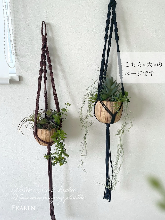 <中 BROWN>ヒヤシンスバスケットのマクラメハンギングプランター ~光触媒加工~