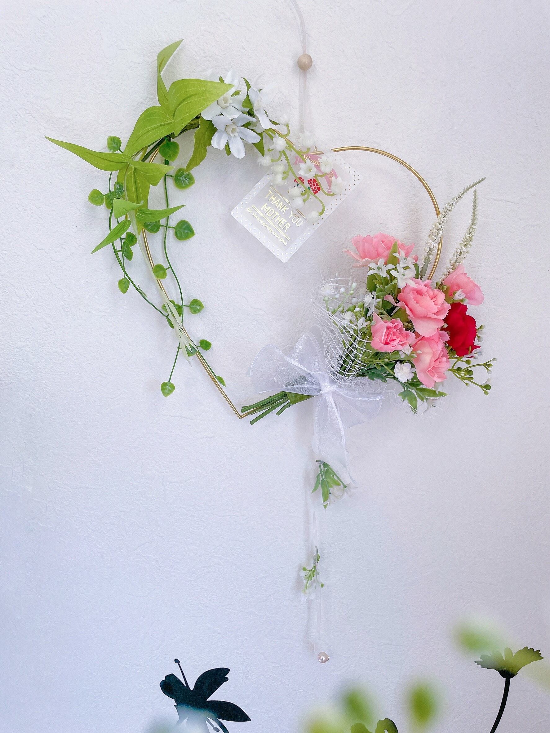 ・母の日プレゼントにぴったりな花言葉で気持ち伝わるリースです