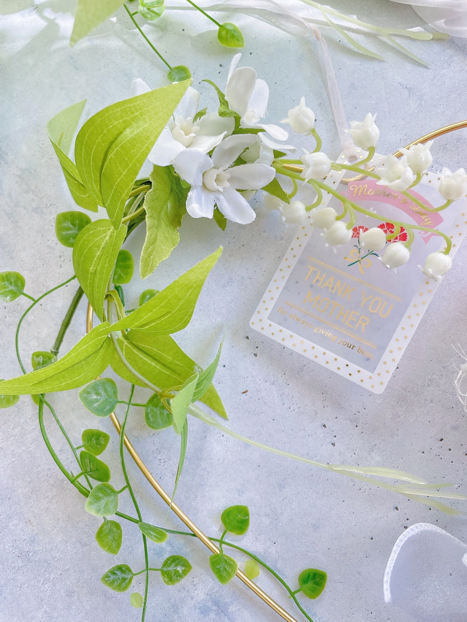 ・優しく咲くカーネーションと可憐なスズランが寄り添うようなデザインで、母親のあたたかな愛情をカタチにしました