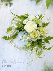・玄関ドアリースやリビング等、お好みの場所を癒しのホワイトグリーンで彩ります