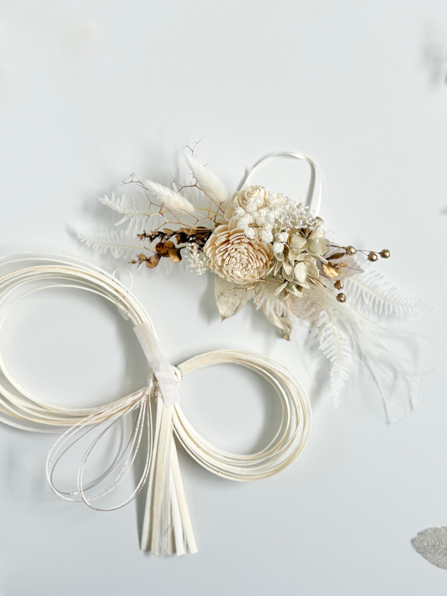 プリザーブド・ドライ・ソラフラワーで束ねたスワッグを