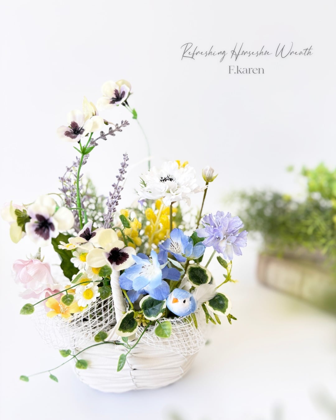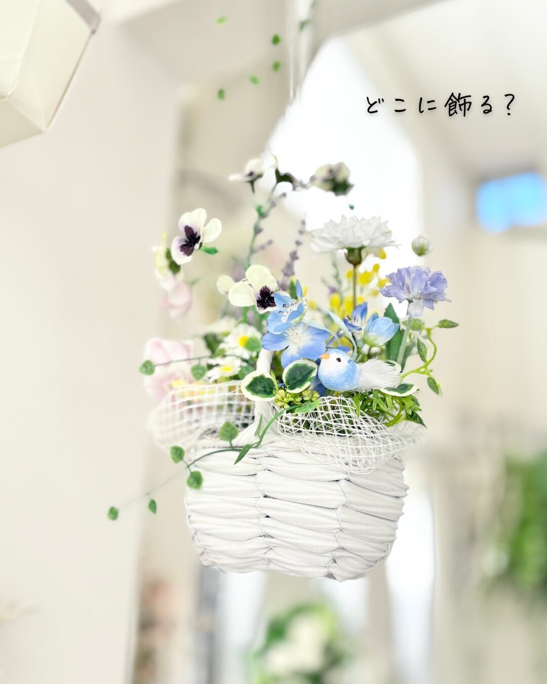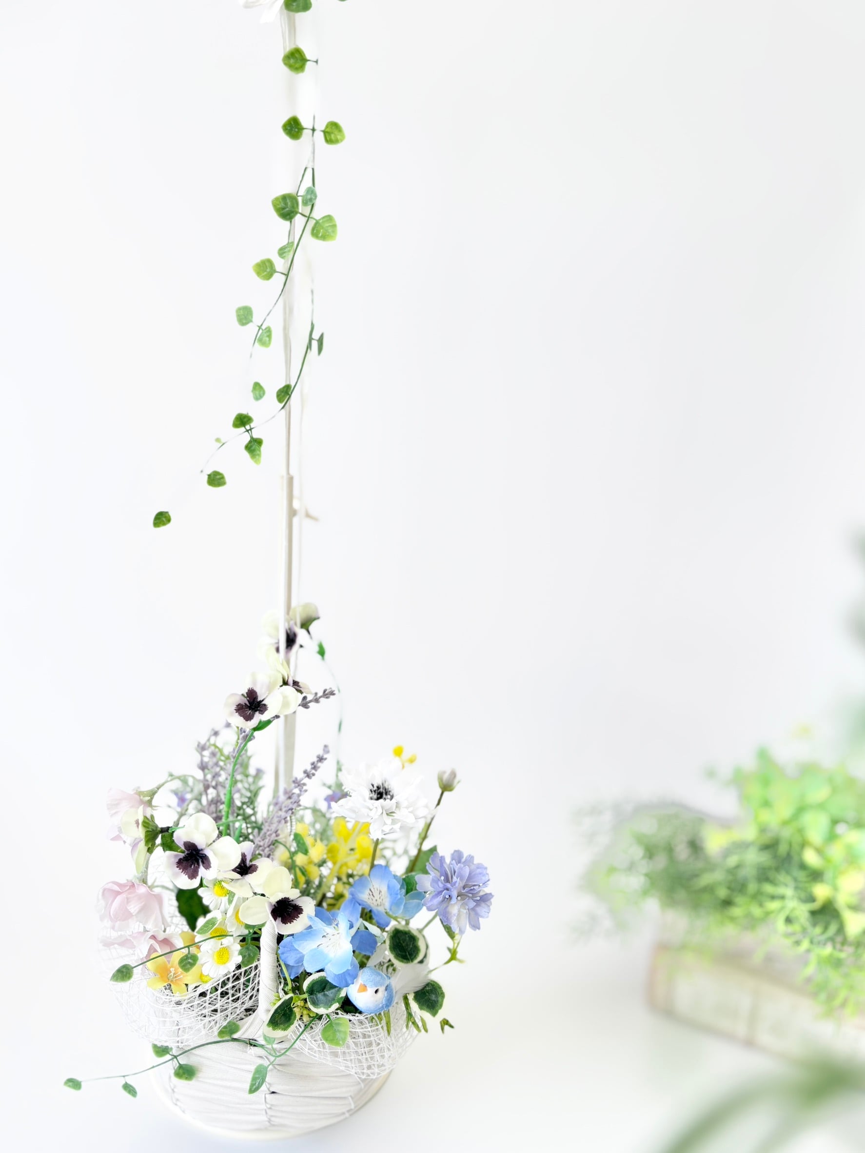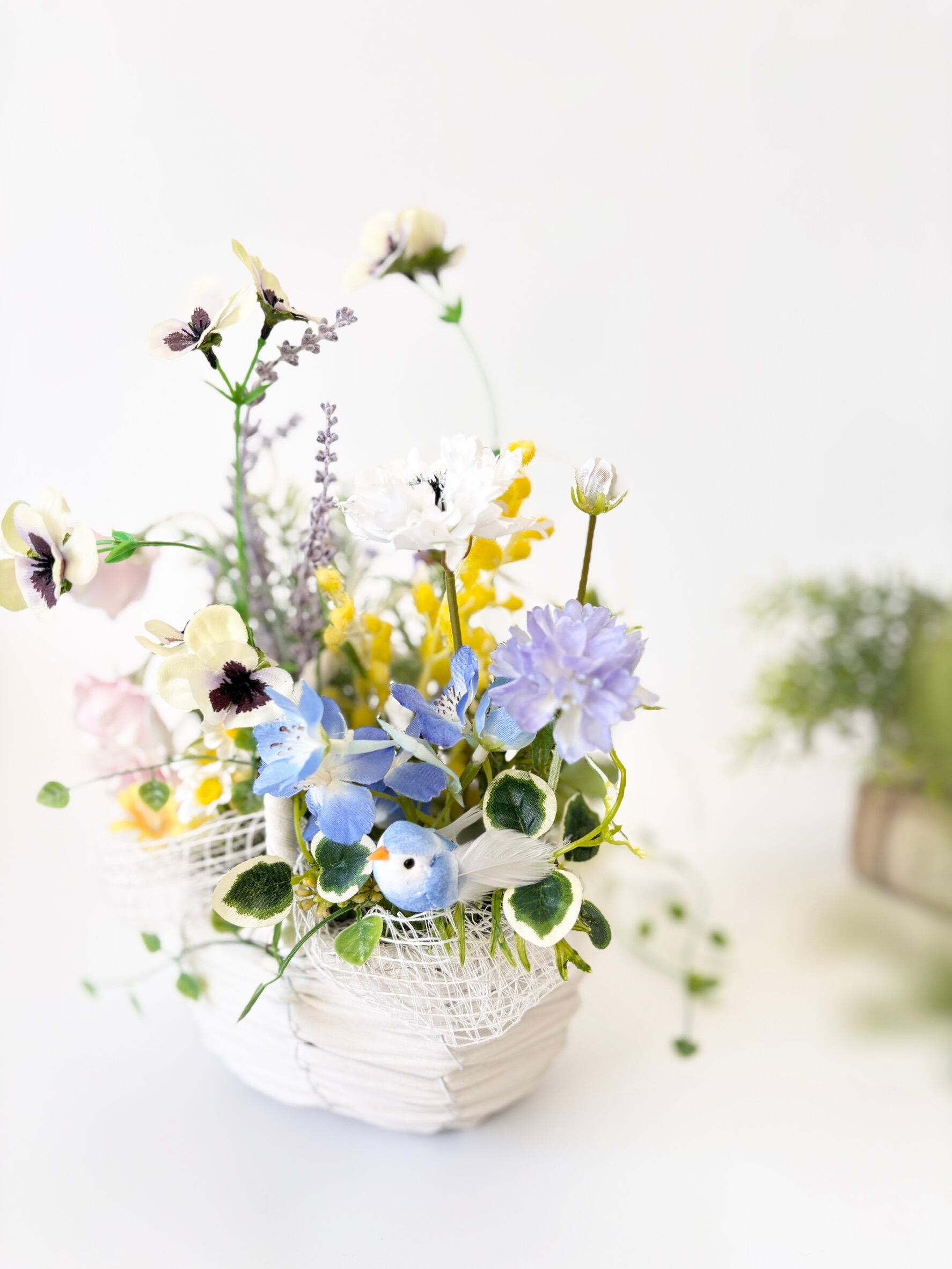2way 春色バスケット ~青い鳥の小さな花便り~ アーティフィシャルフラワー(造花)花かご*光触媒加工
