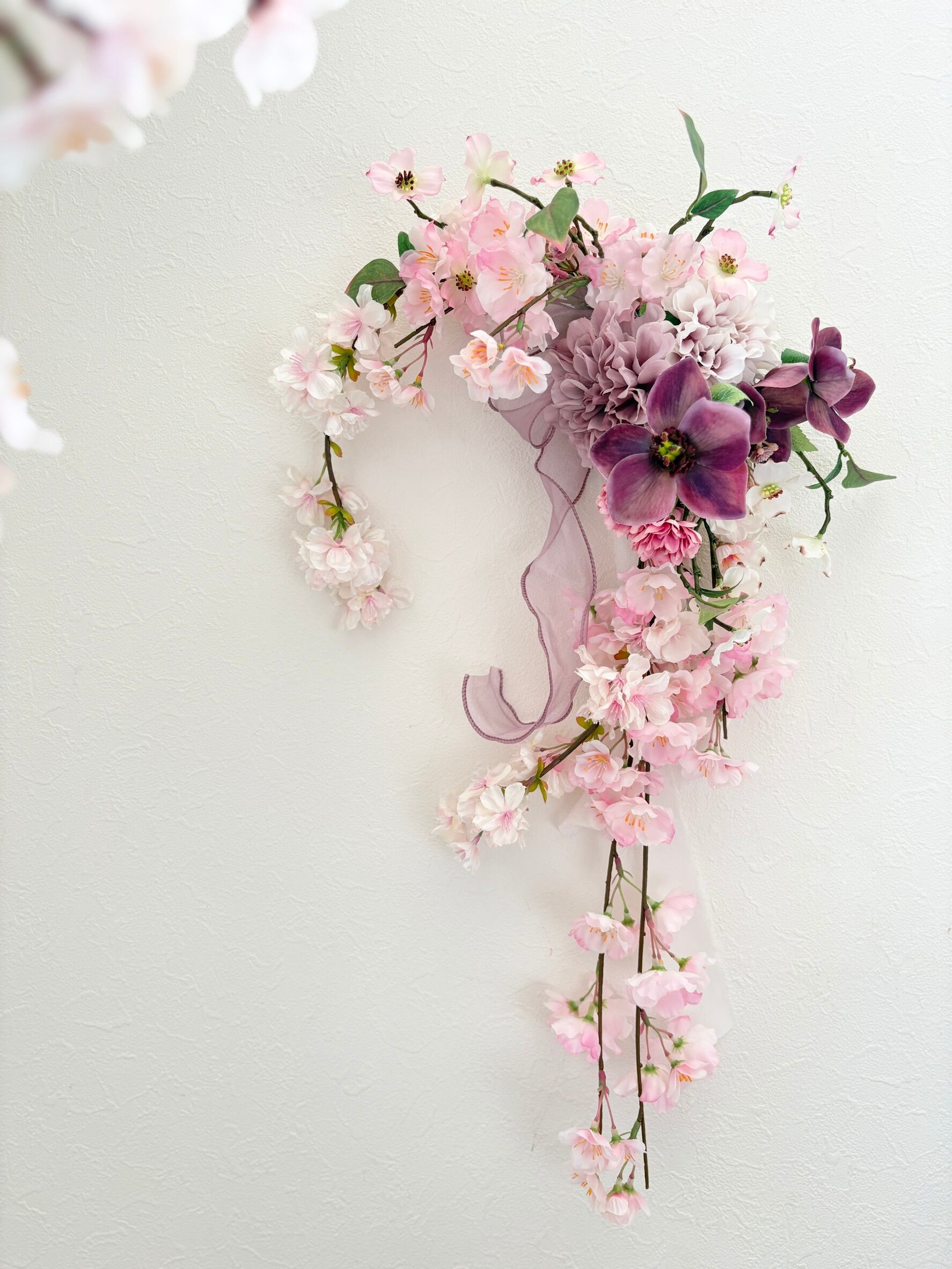 はんなり しだれ桜の馬蹄リース * アーティフィシャルフラワーリース(造花)光触媒加工