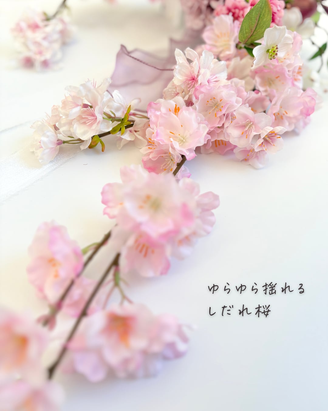 ゆらりと揺れるしだれ桜の枝ぶりを活かしました。