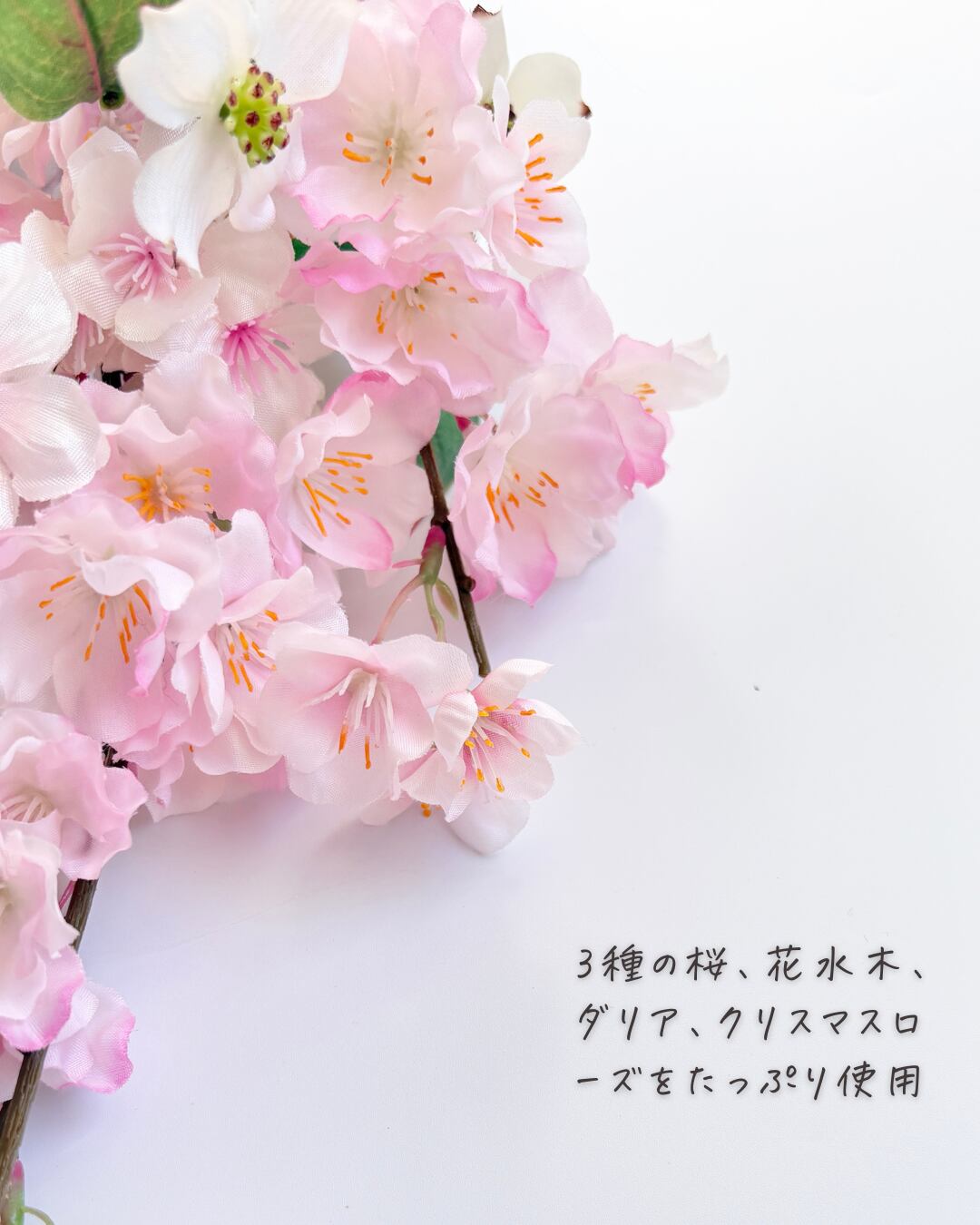 ・しだれ桜を含む三種の桜をたっぷり使用し、奥行きのある春色グラデーションに