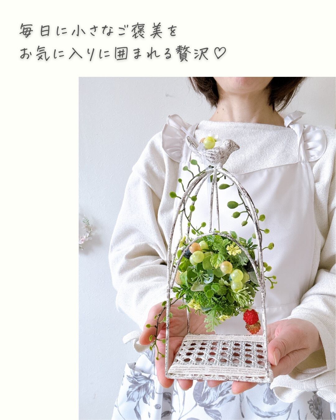 森の果実の鳥かごアレンジ* アーティフィシャルフラワー(造花)光触媒加工