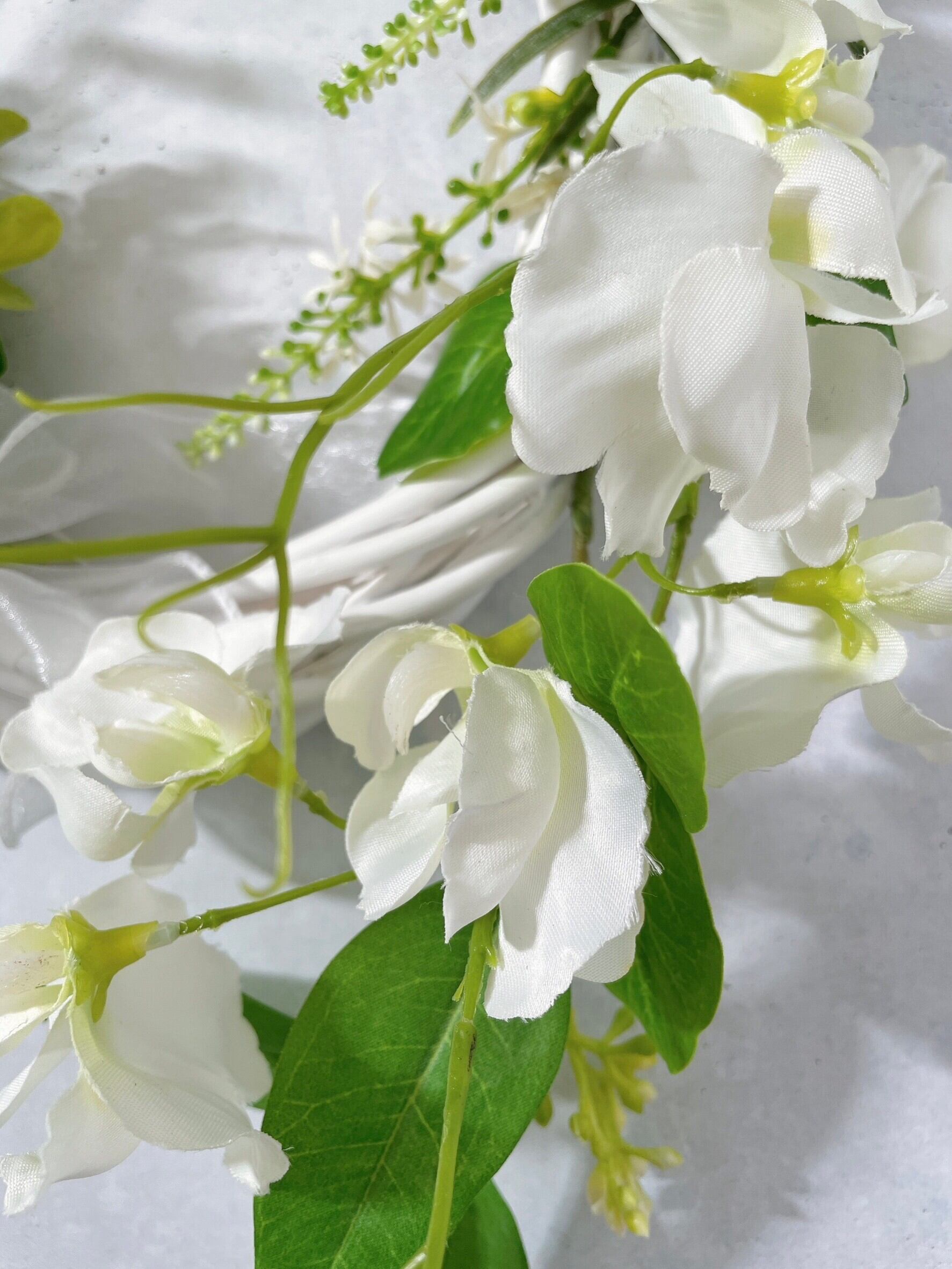 右サイドは、エレガントなスイートピーをナチュラルに垂らして