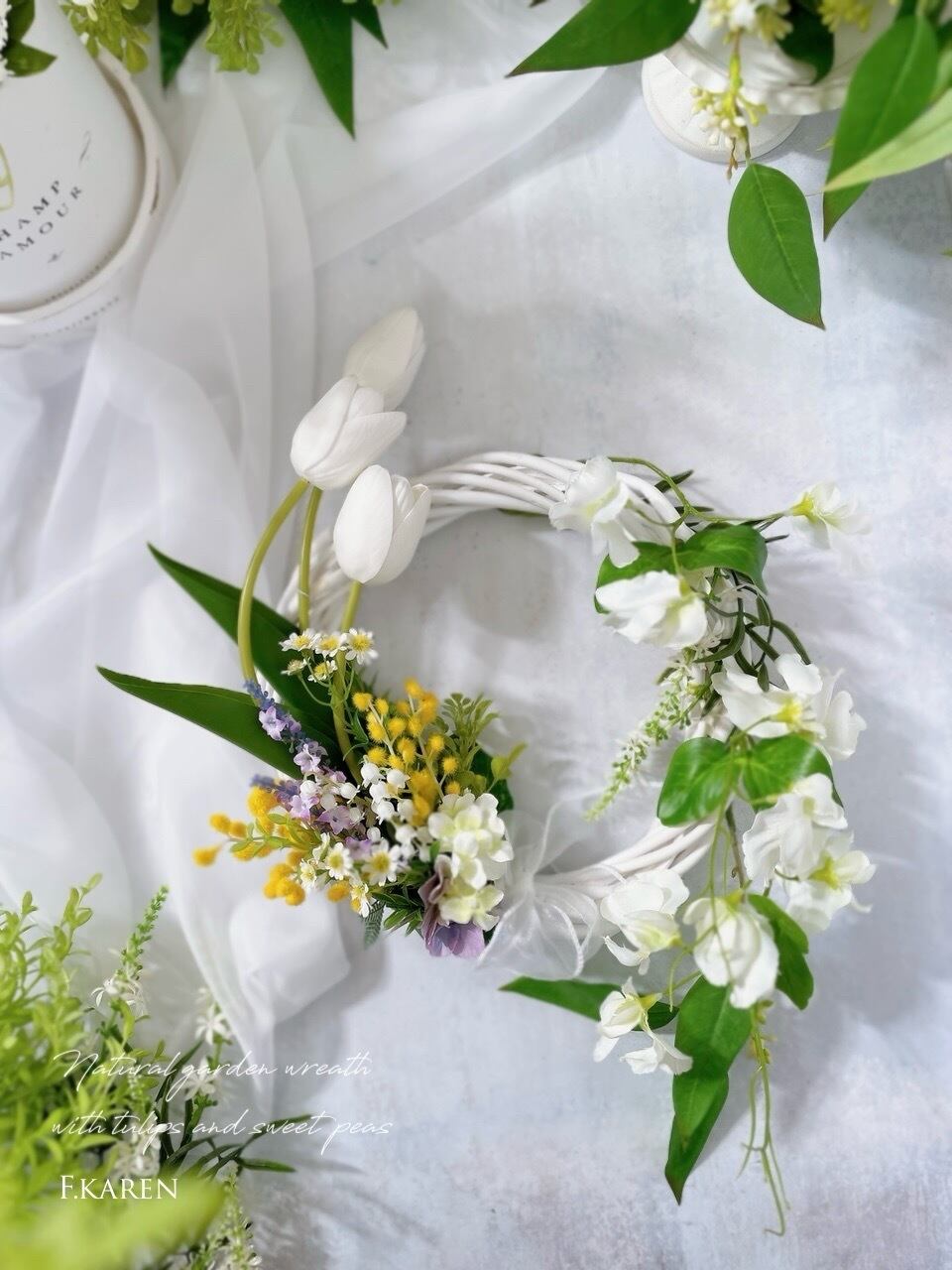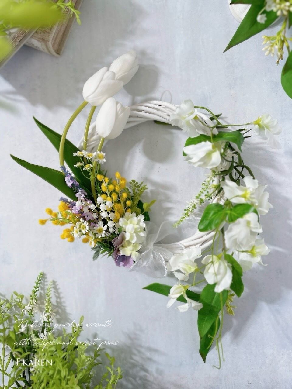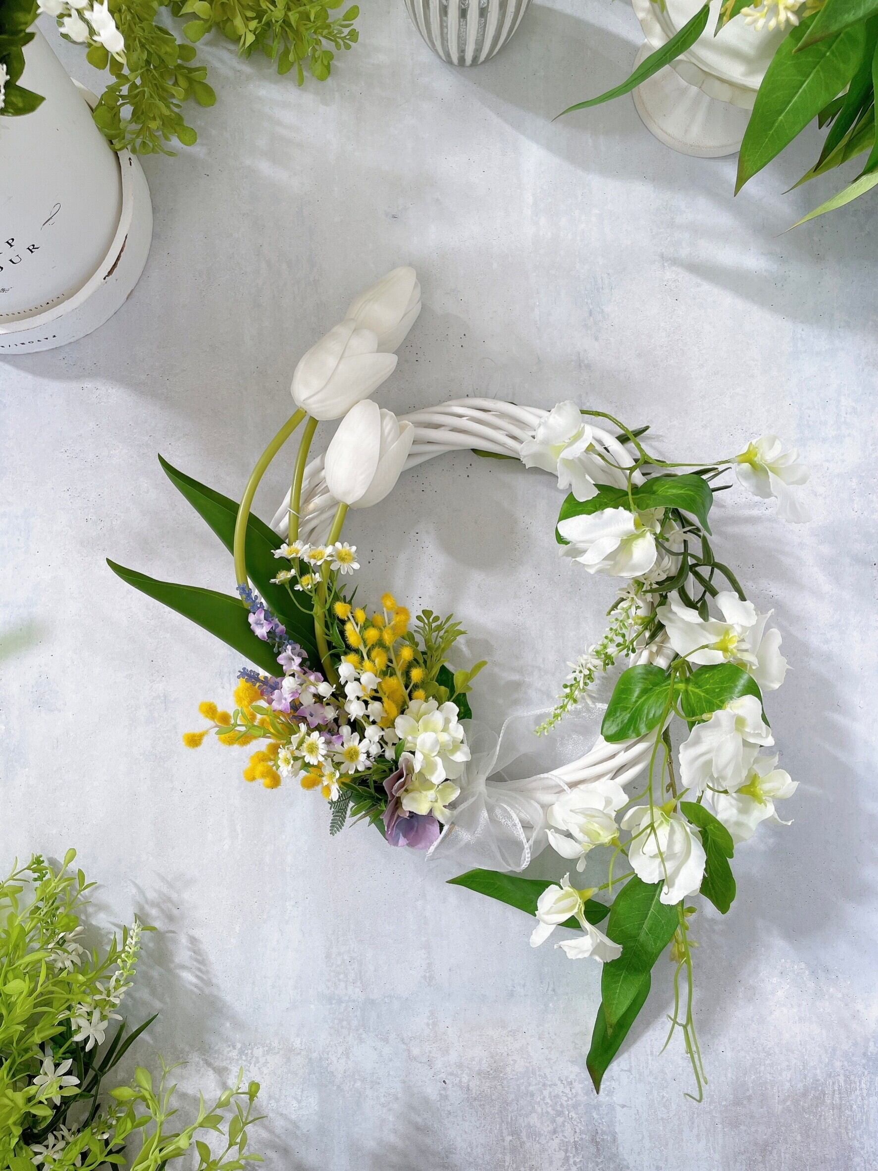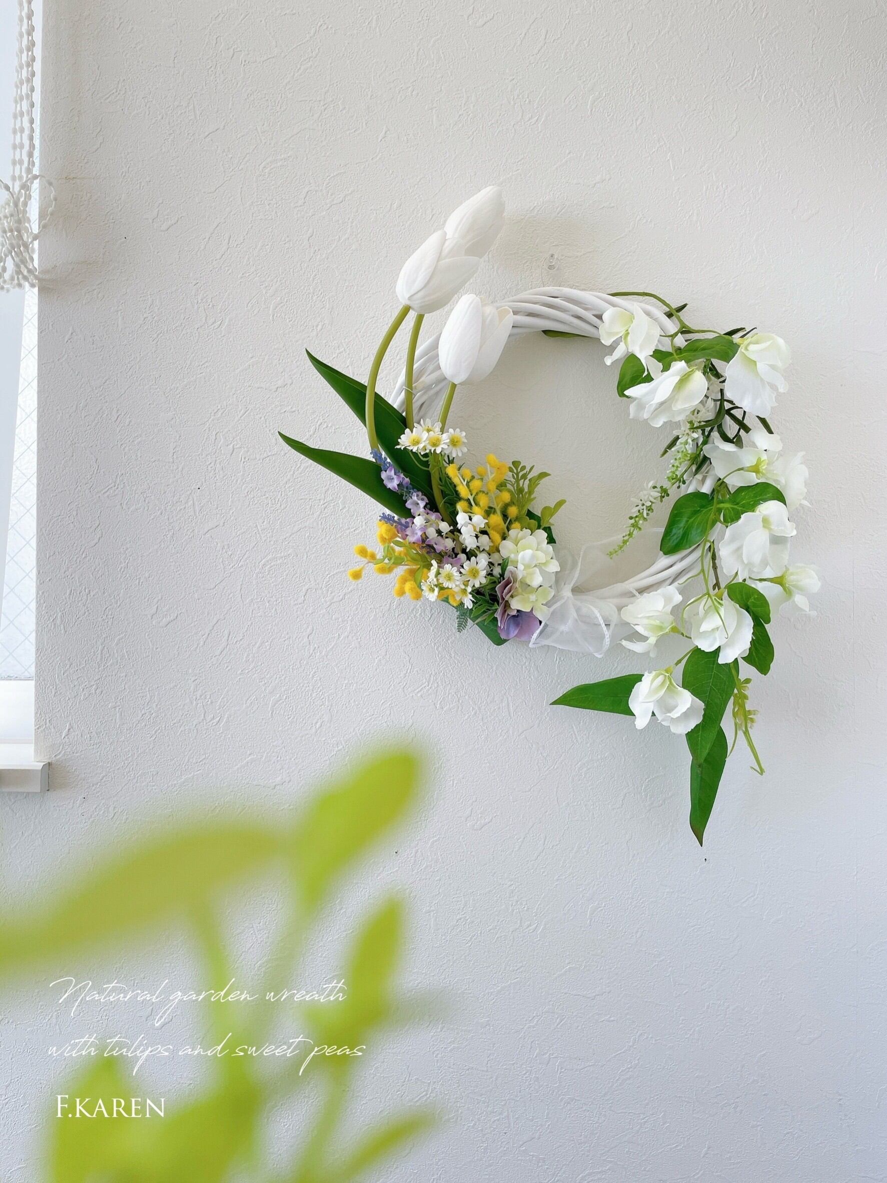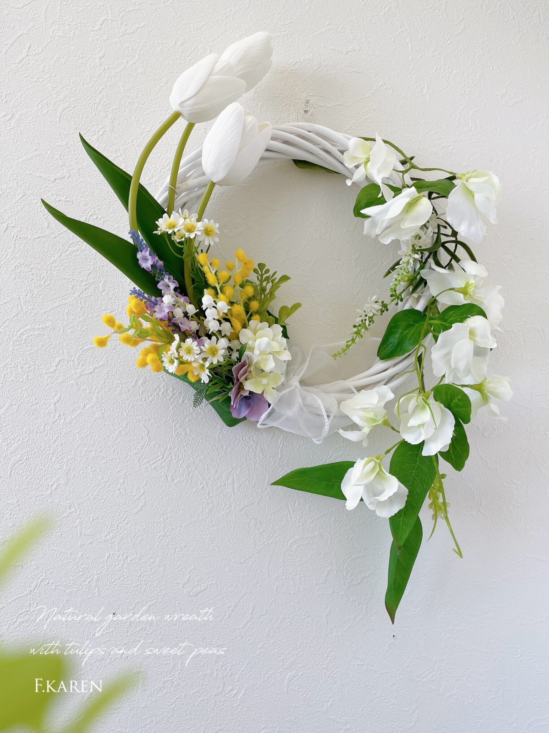 チューリップとスイートピーのナチュラルガーデンリース ~光触媒加工~
