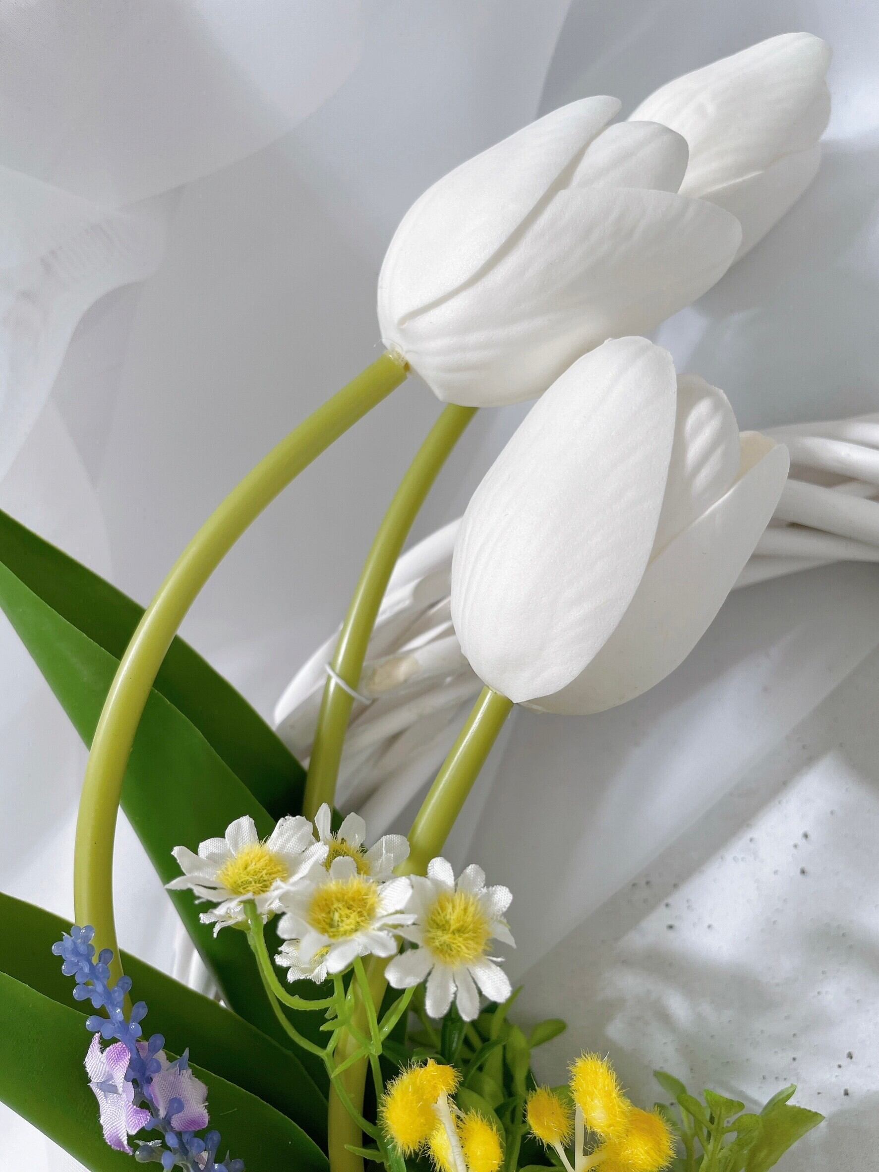 チューリップ、スイートピー、ミモザ、ラベンダー、スズラン、カモミール、アジサイ、ベロニカ、ボックスウッド