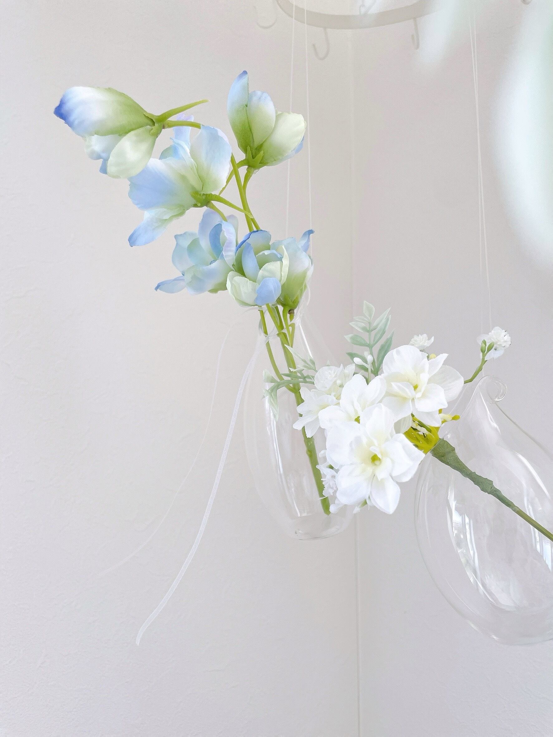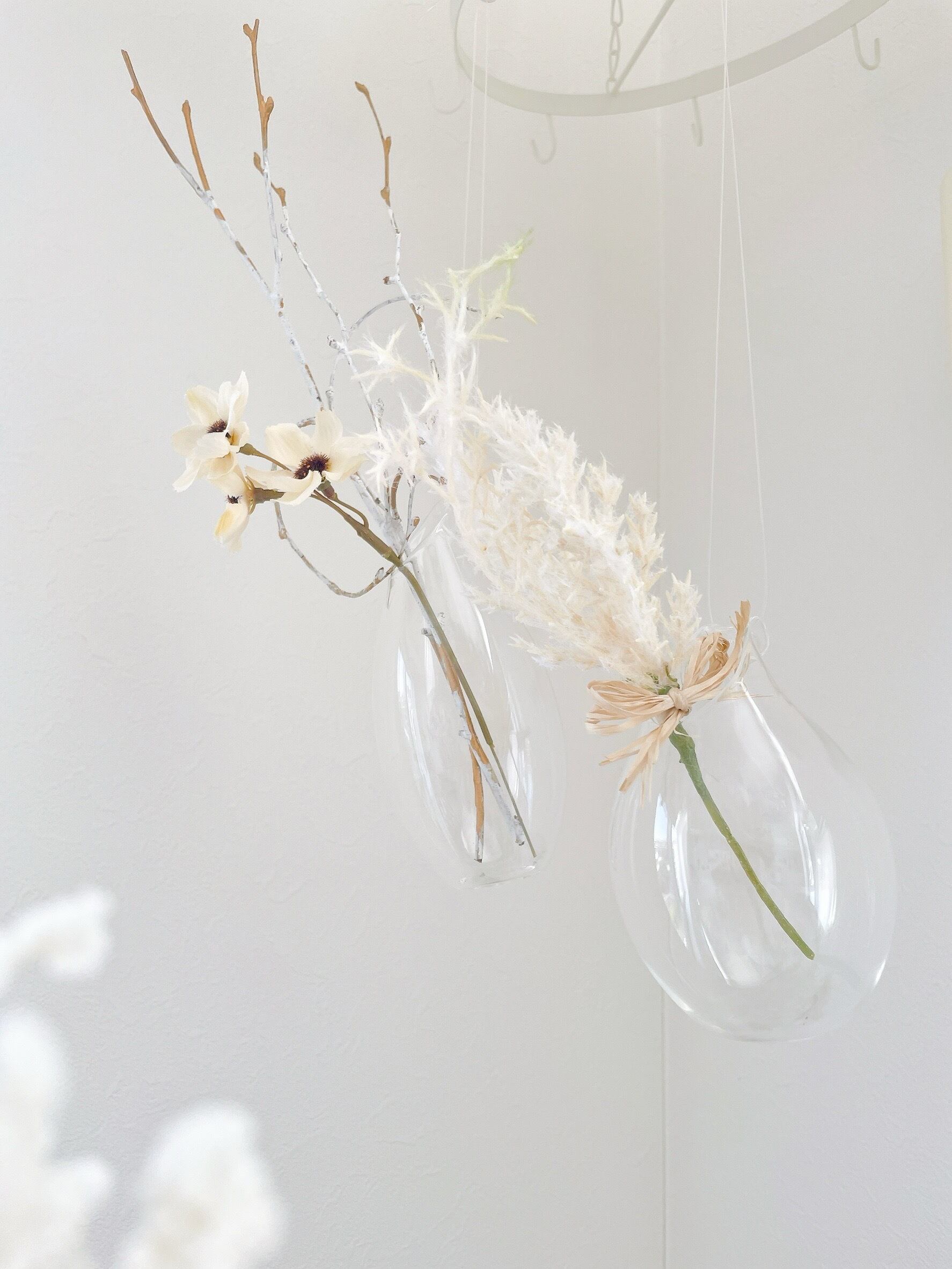 <<季節のお花ディスプレイセット>>2wayフラワードロップ【2つの花瓶+お花セット】~光触媒加工~