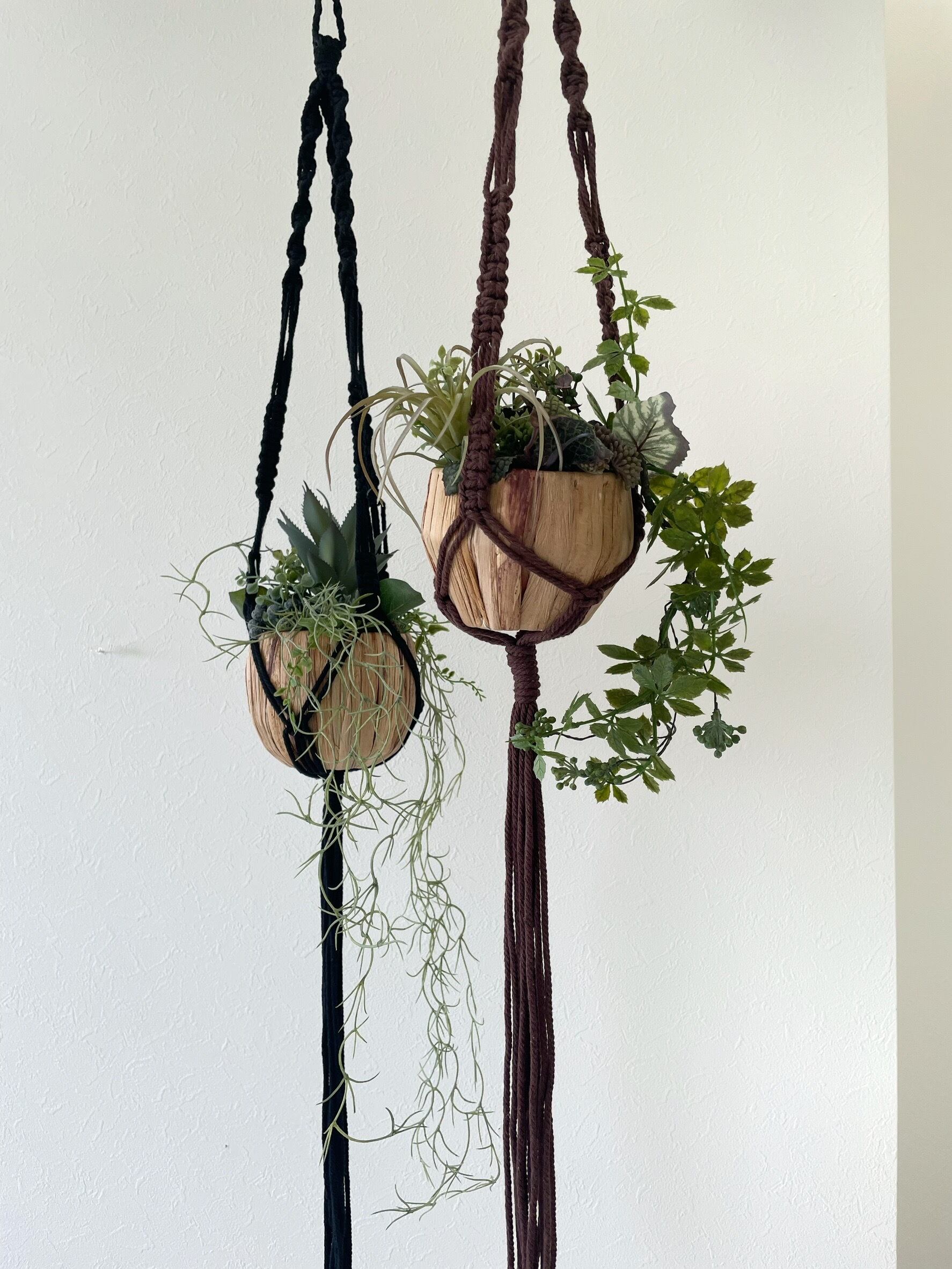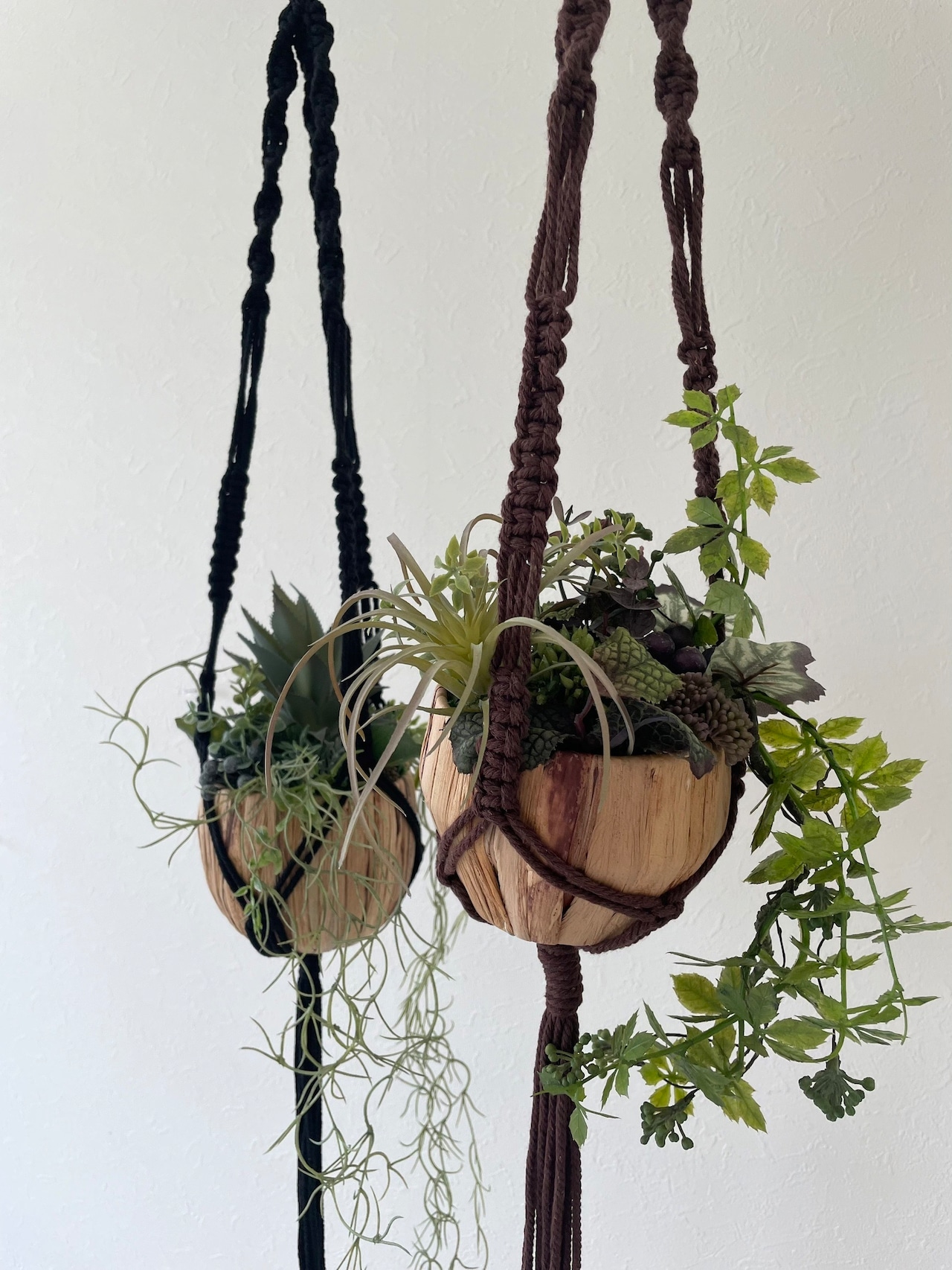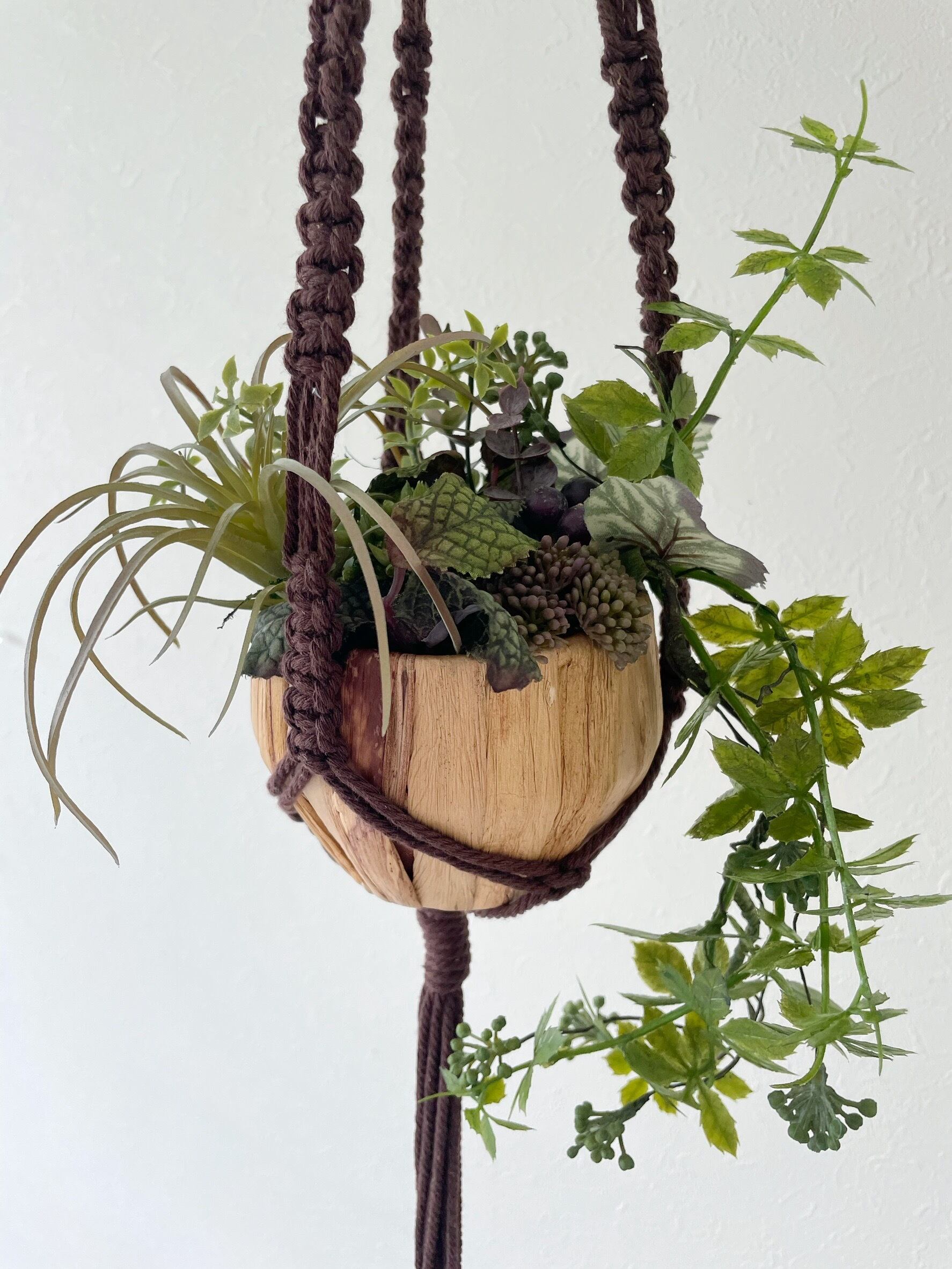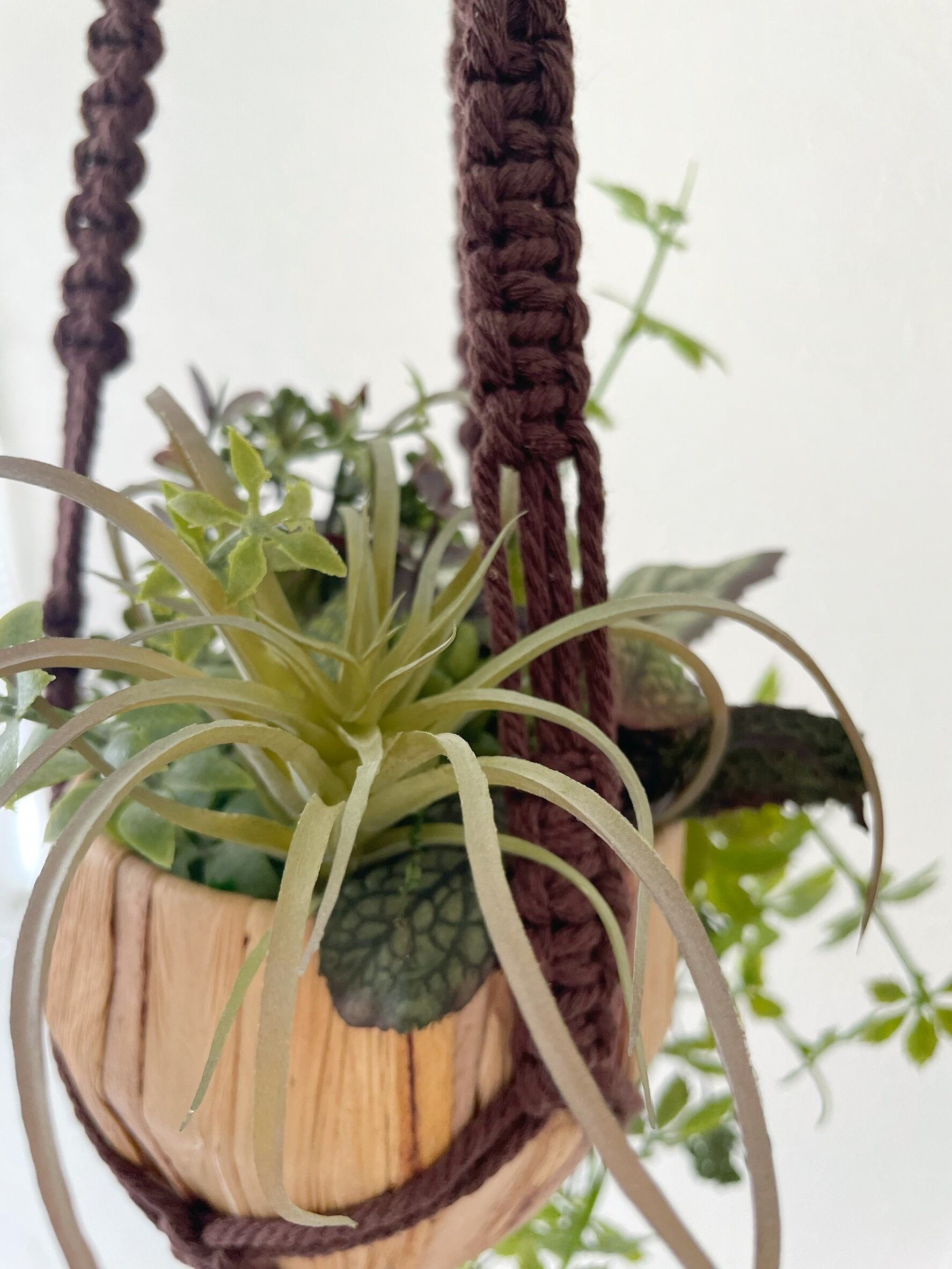 <中 BROWN>ヒヤシンスバスケットのマクラメハンギングプランター ~光触媒加工~