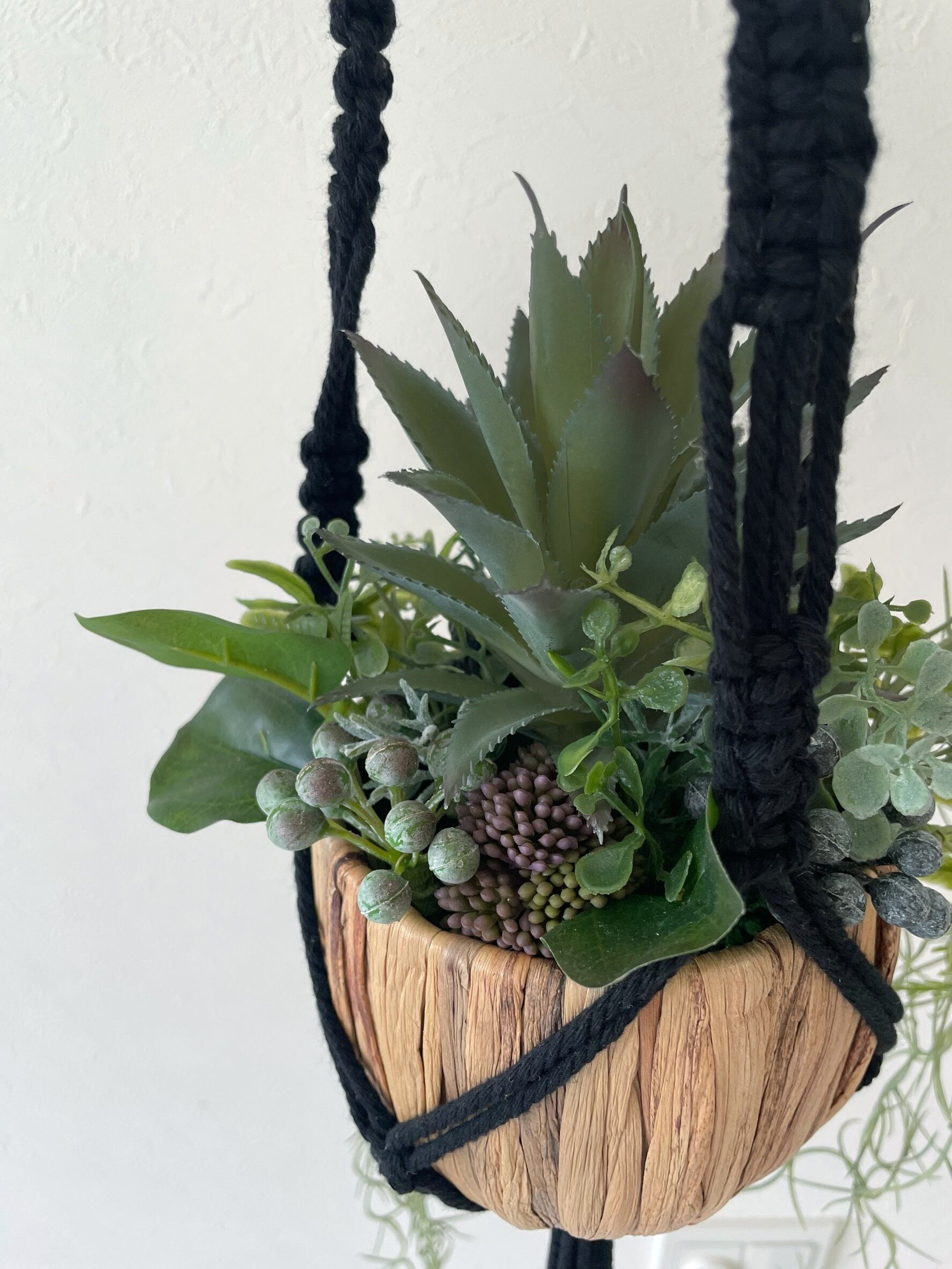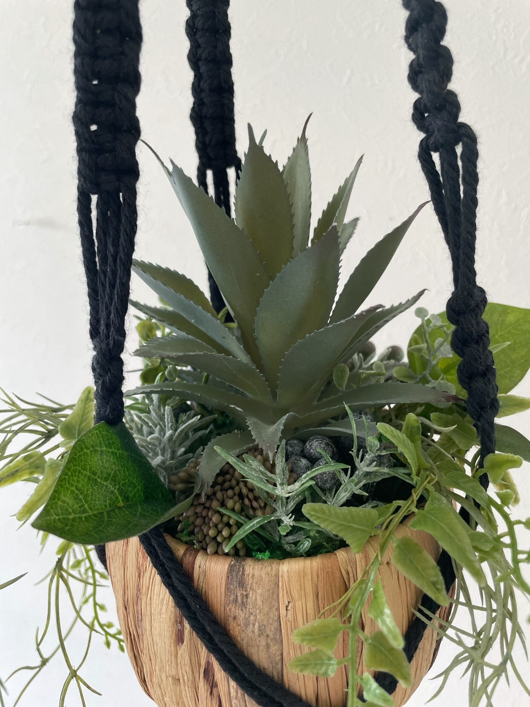 <大 BLACK>ヒヤシンスバスケットのマクラメハンギングプランター ~光触媒加工~