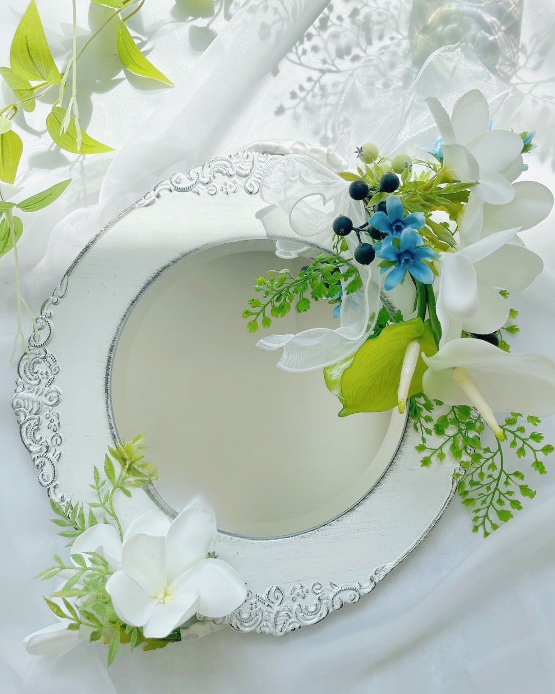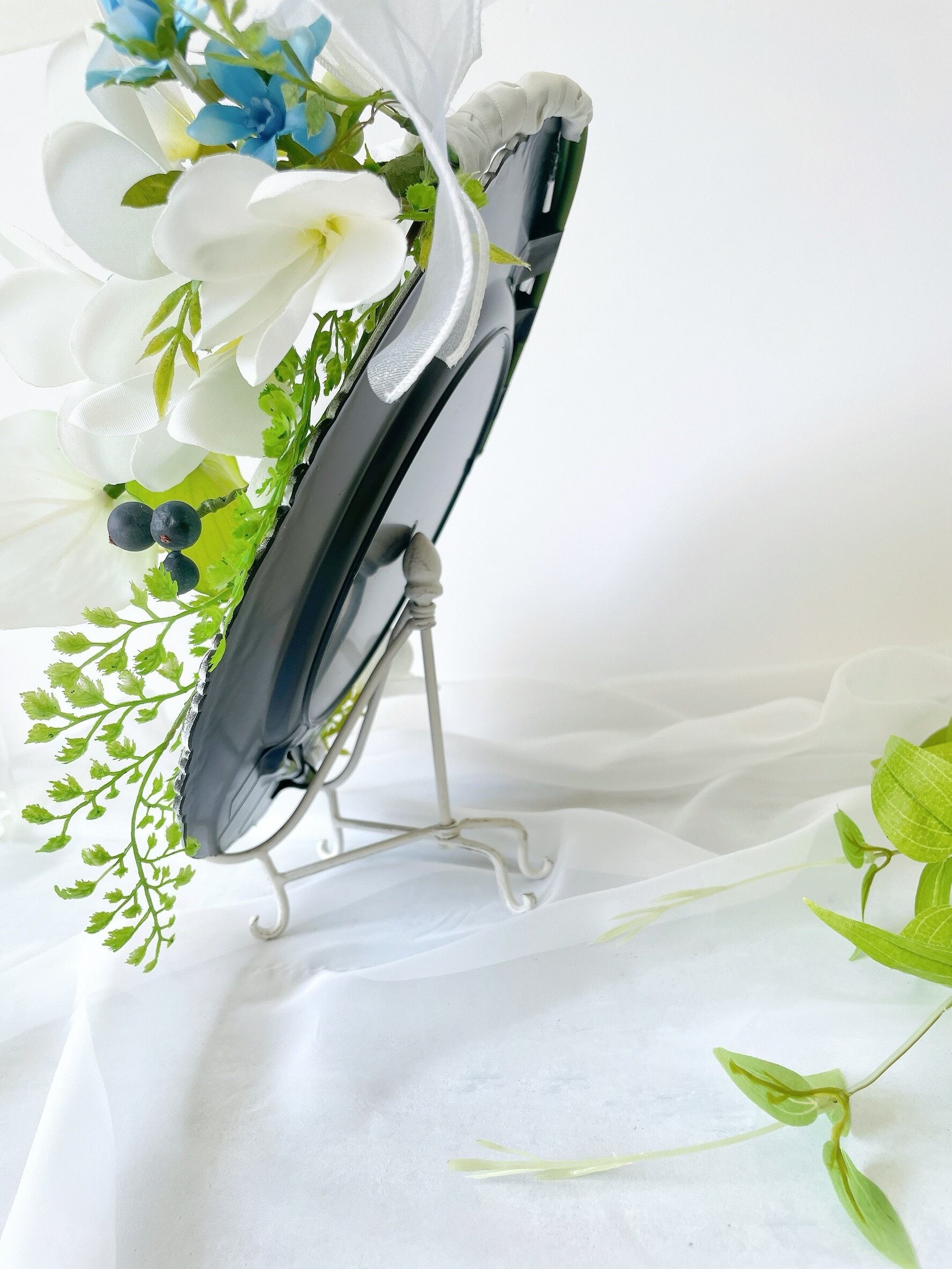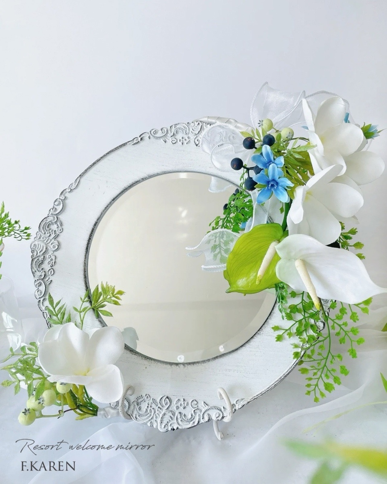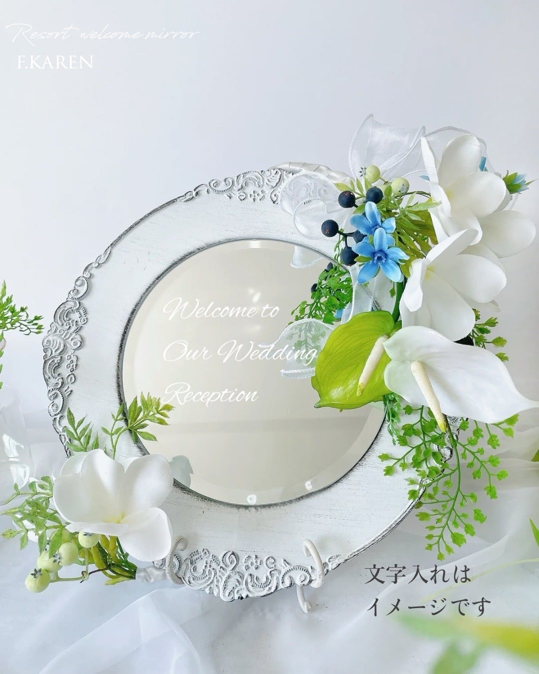 ウェルカムミラー リゾートウェディング風 アイアンスタンド付 壁掛けOK ~光触媒加工~