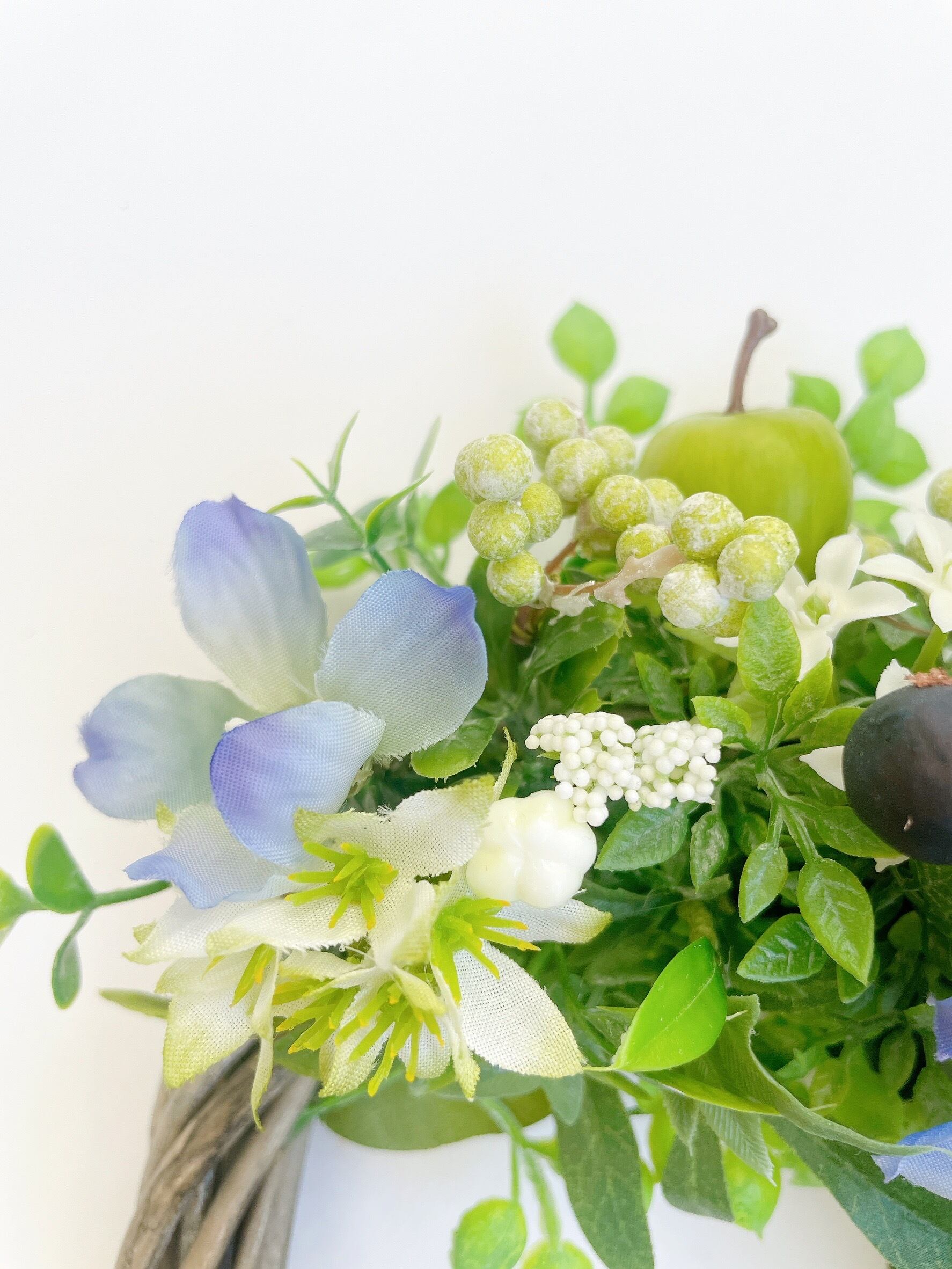 ナチュラルリース*青リンゴとデルフィニウムの造花リース ~光触媒加工~