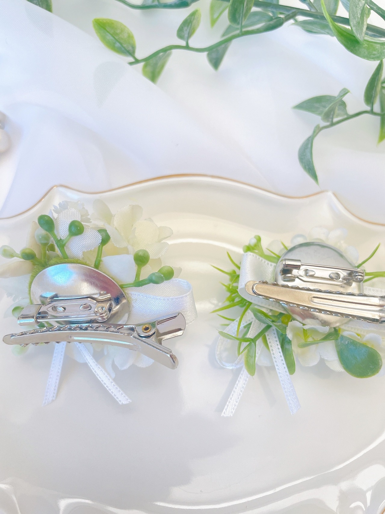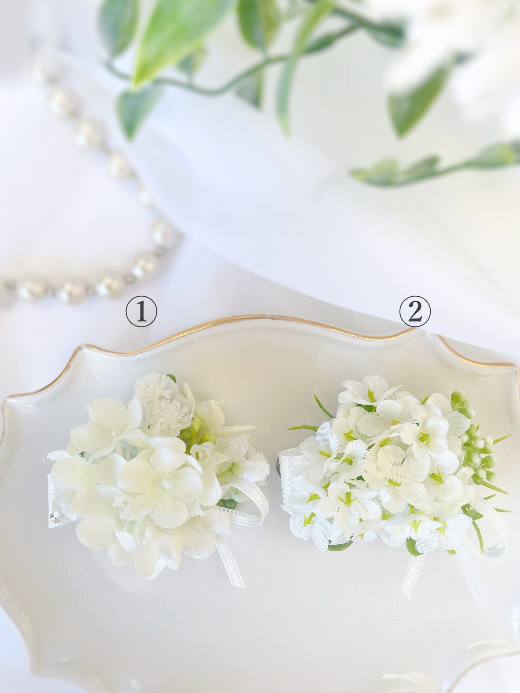 スノーボールのプチコサージュ2種~光触媒加工~