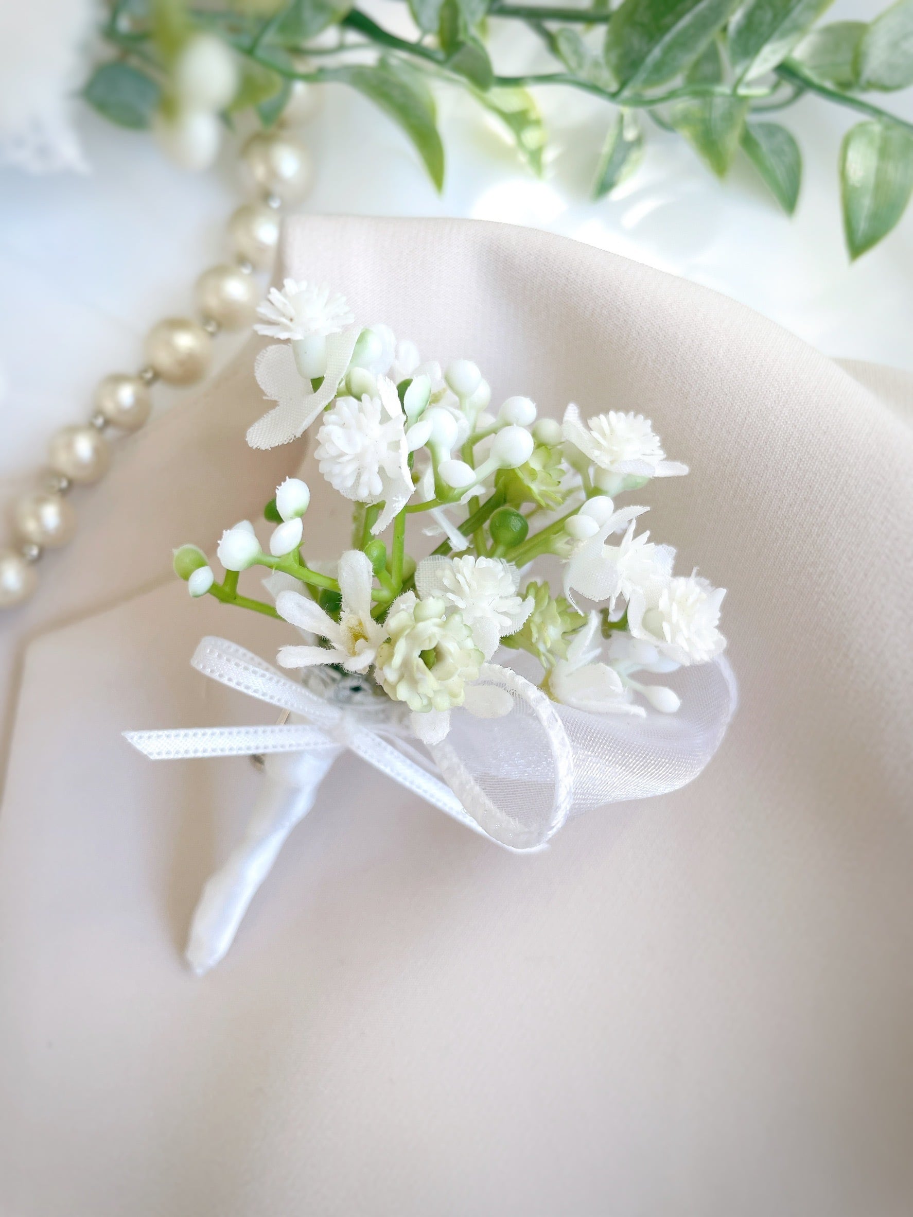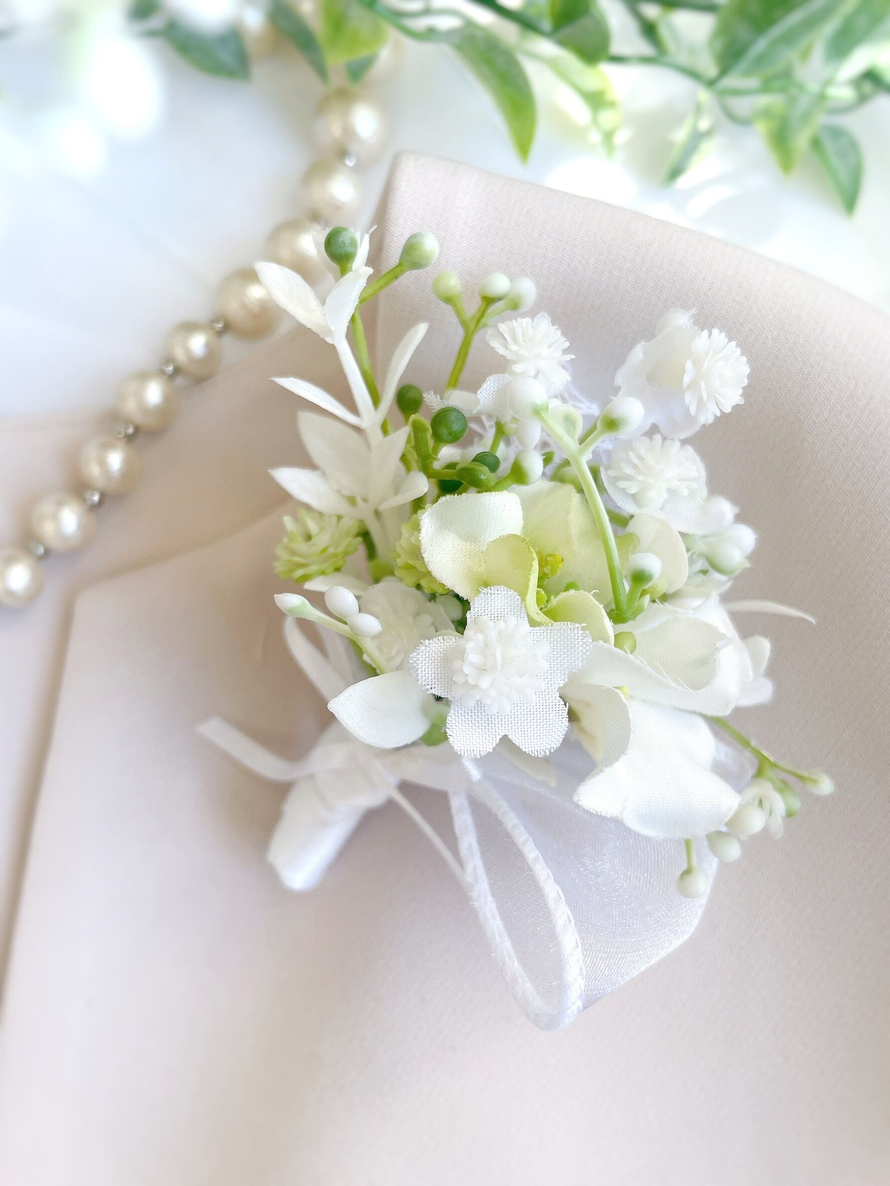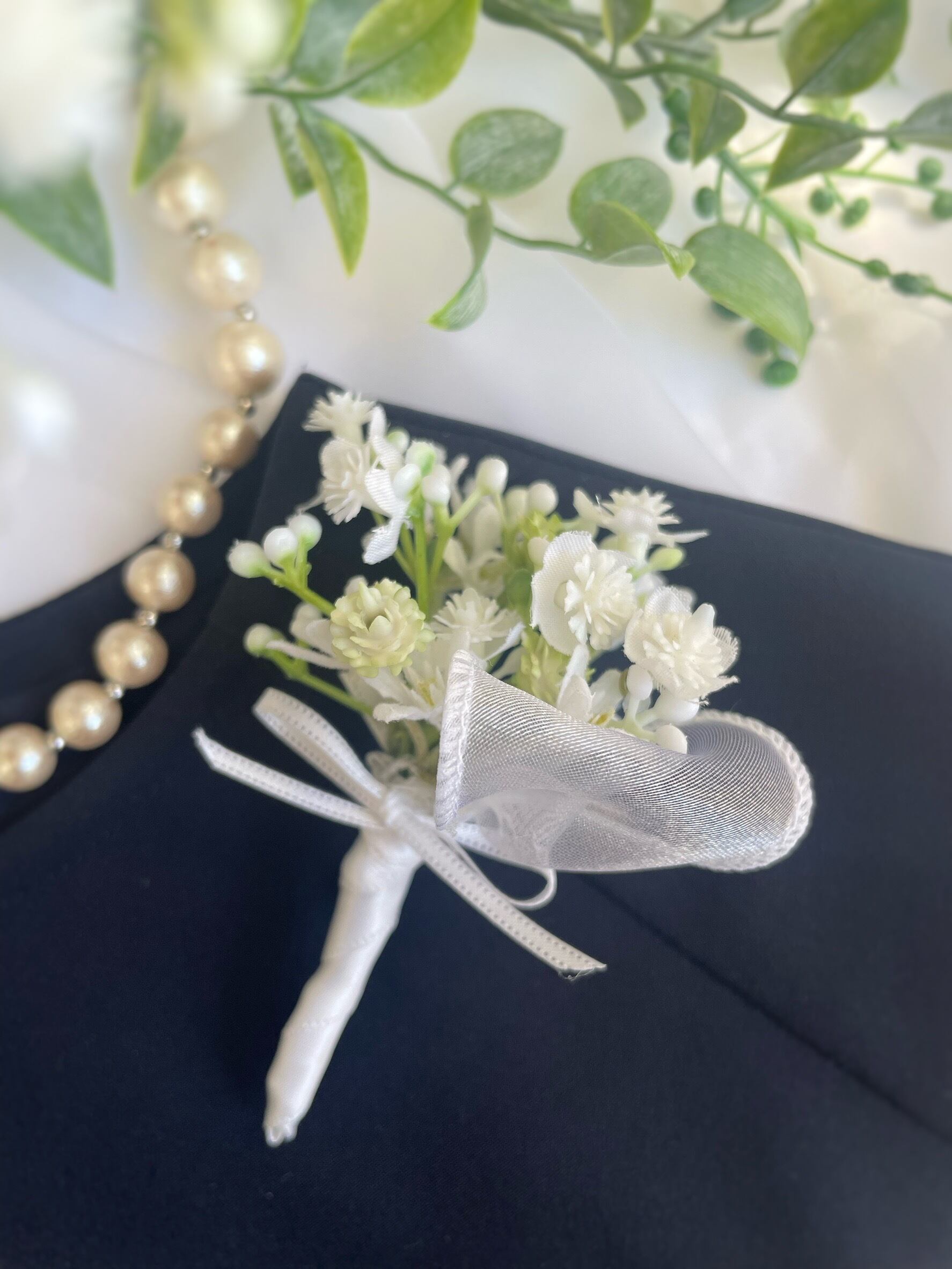 かすみ草のブーケ&スワッグコサージュ1種 ~光触媒加工~