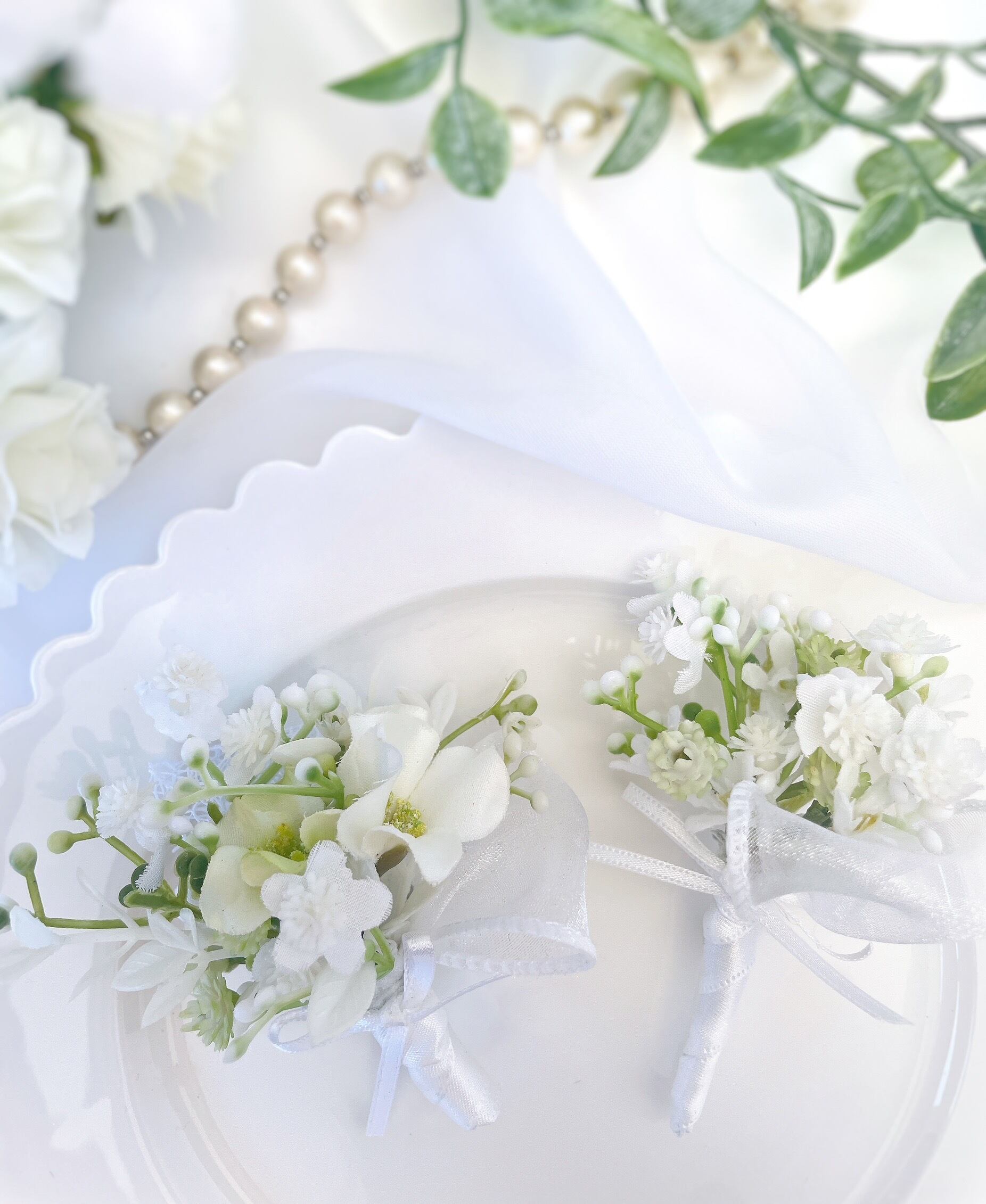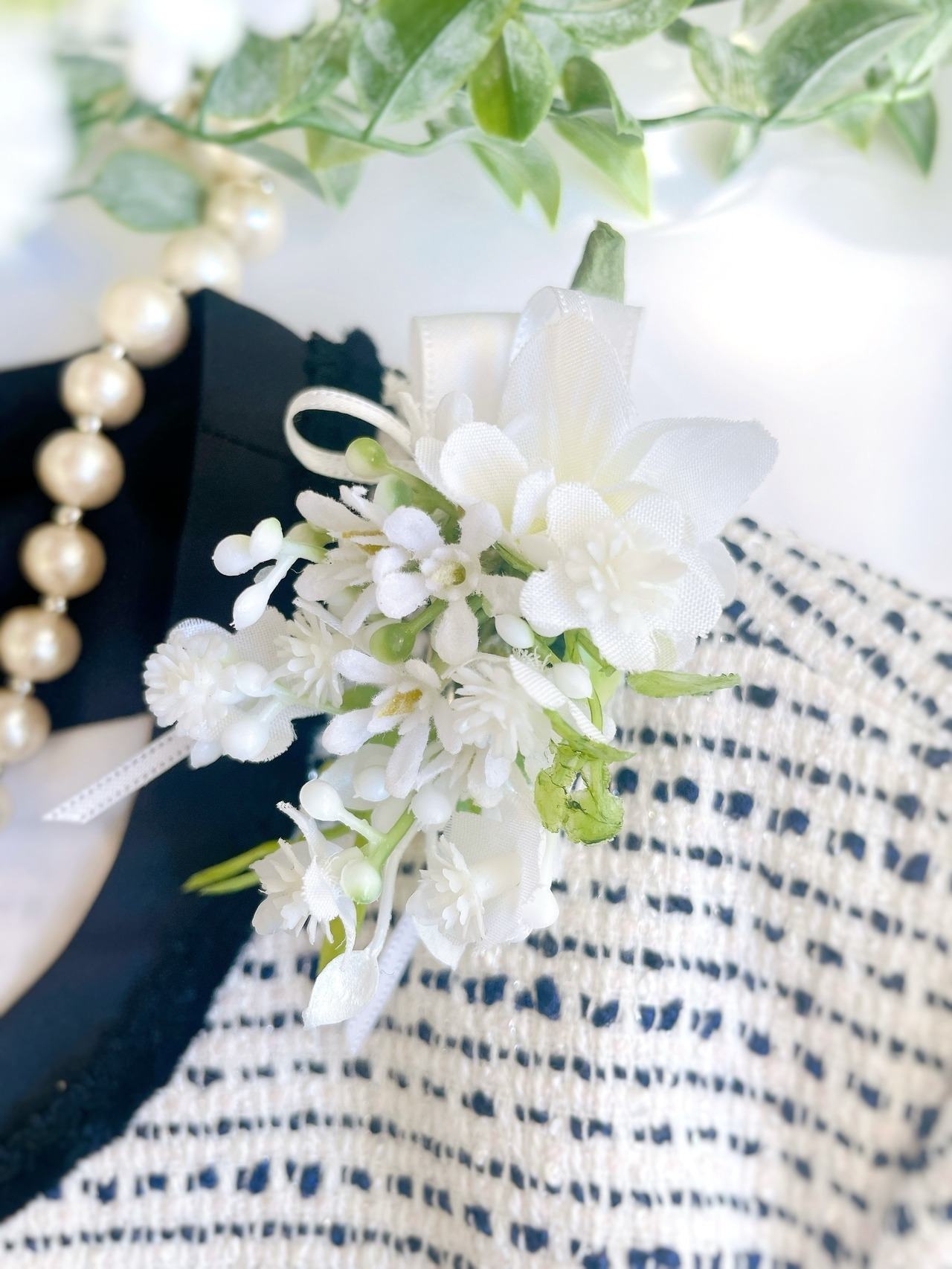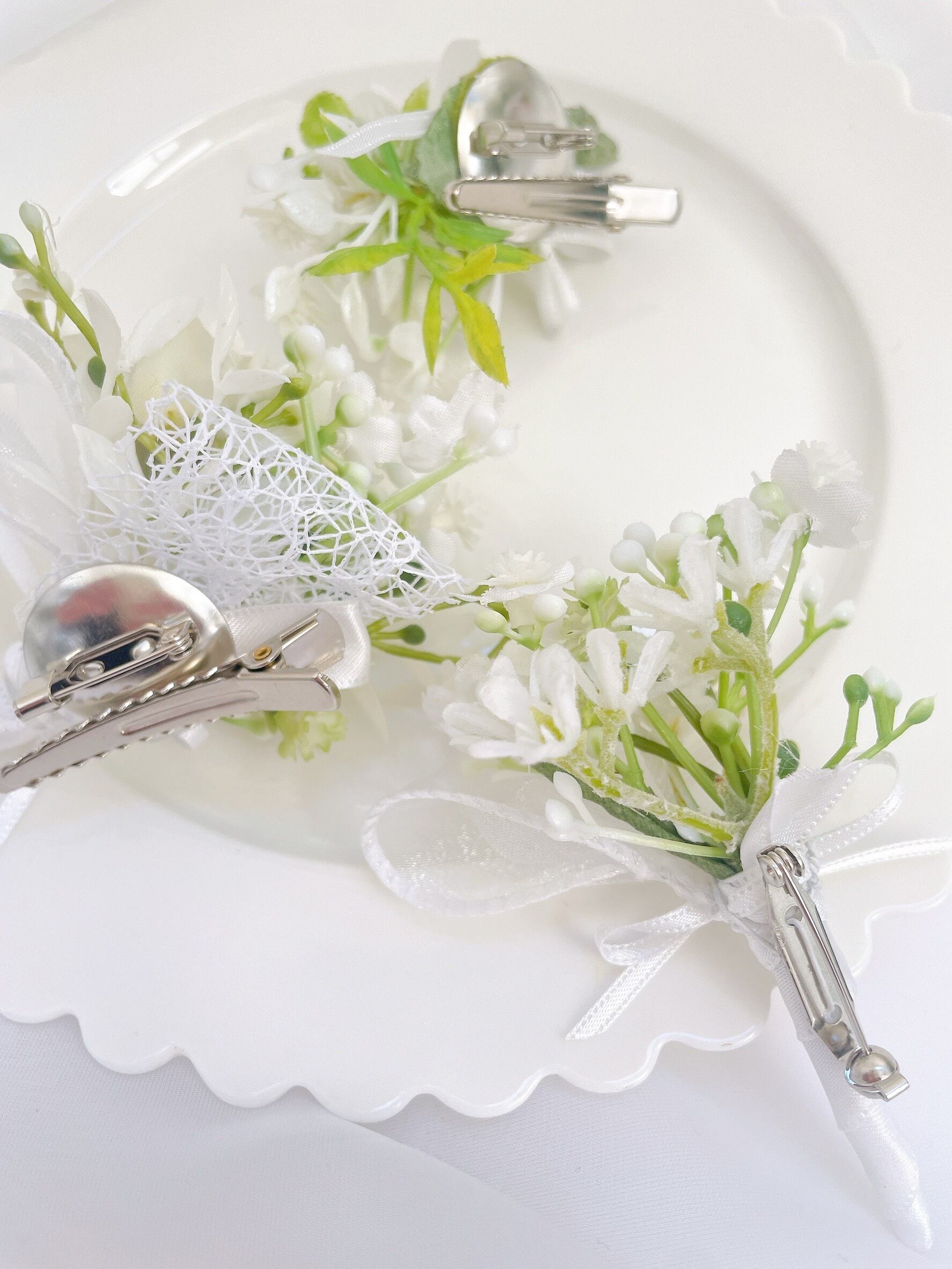 かすみ草のブーケ&スワッグコサージュ1種 ~光触媒加工~