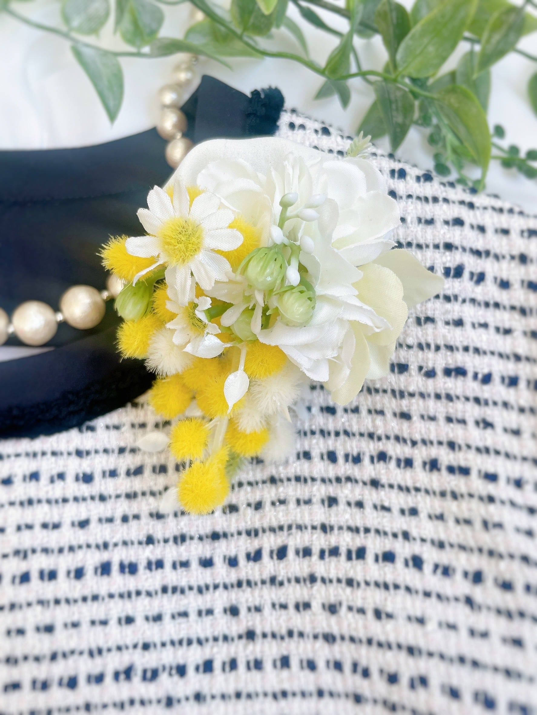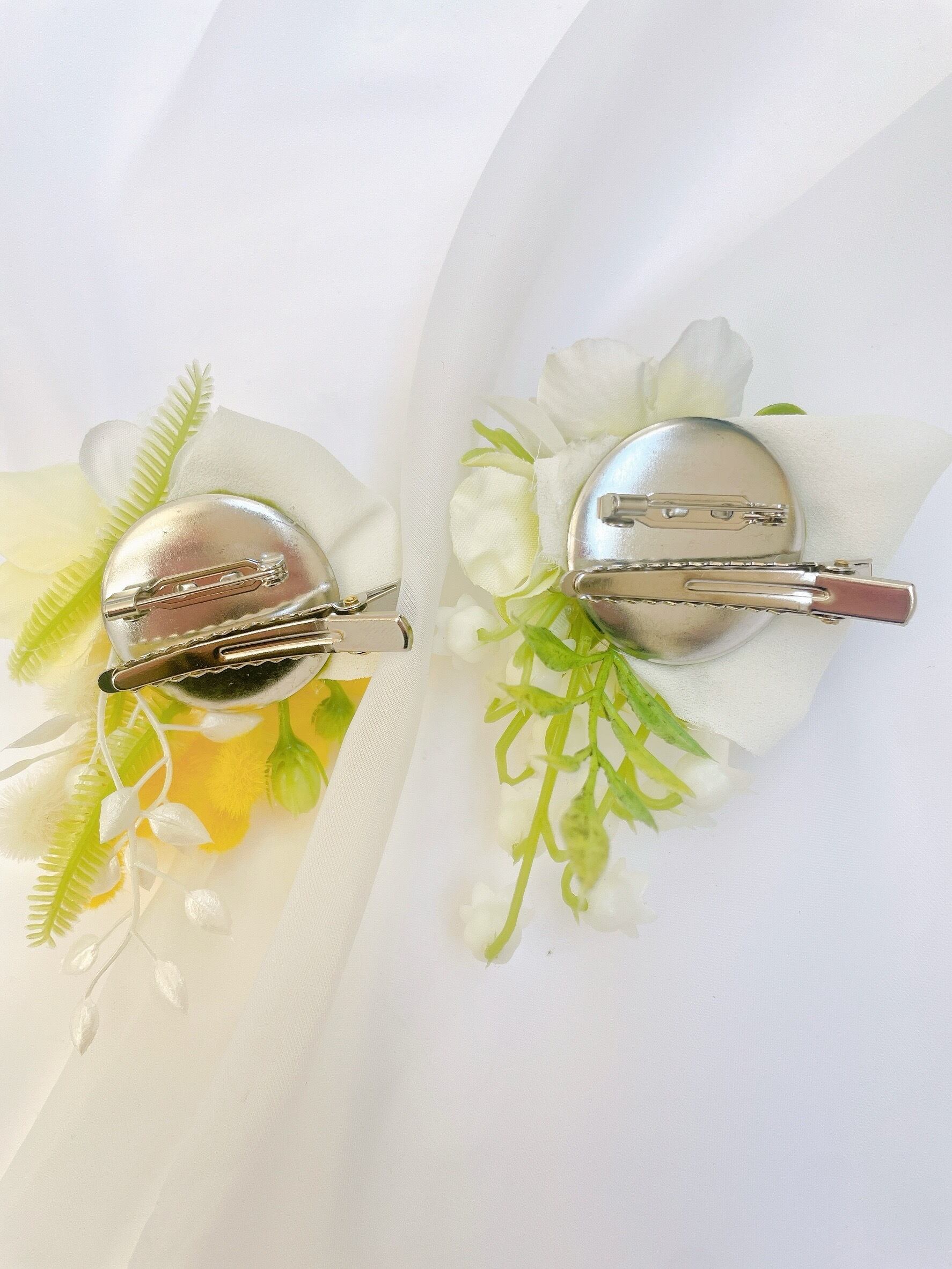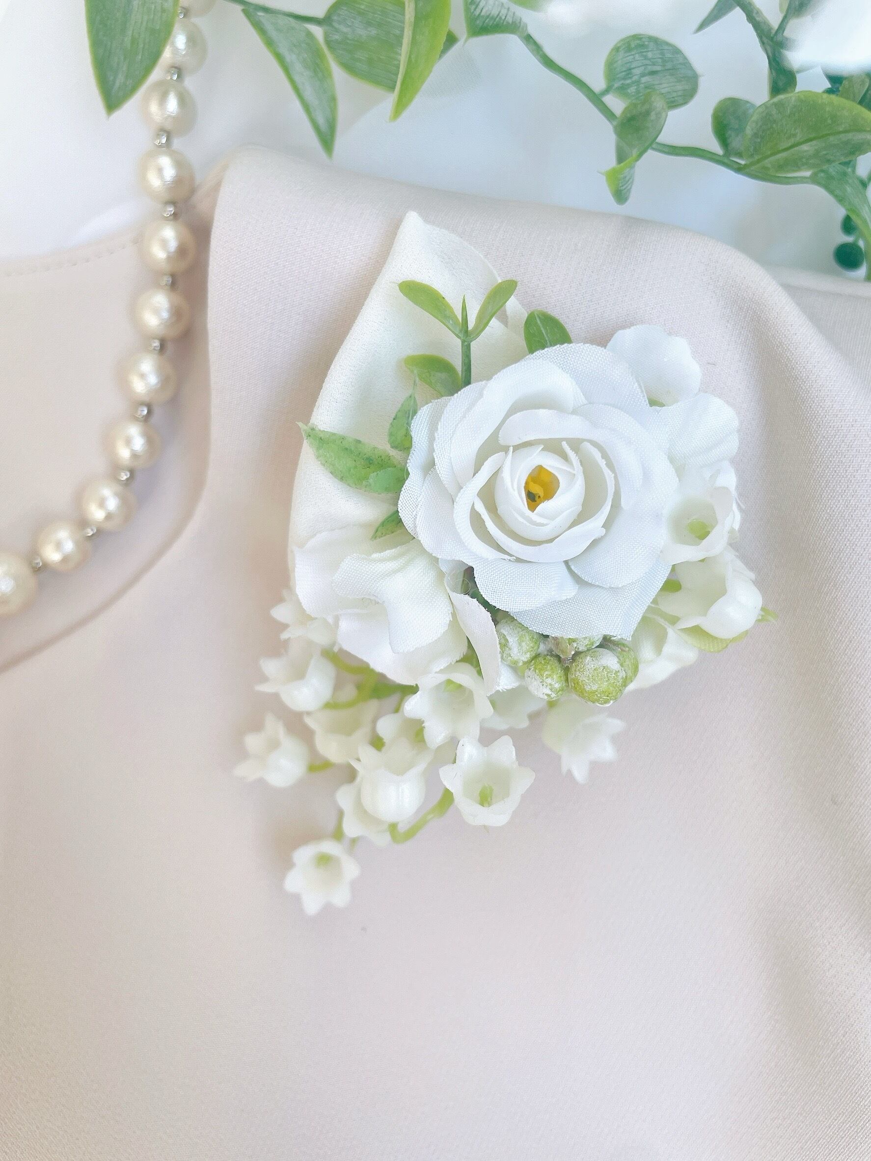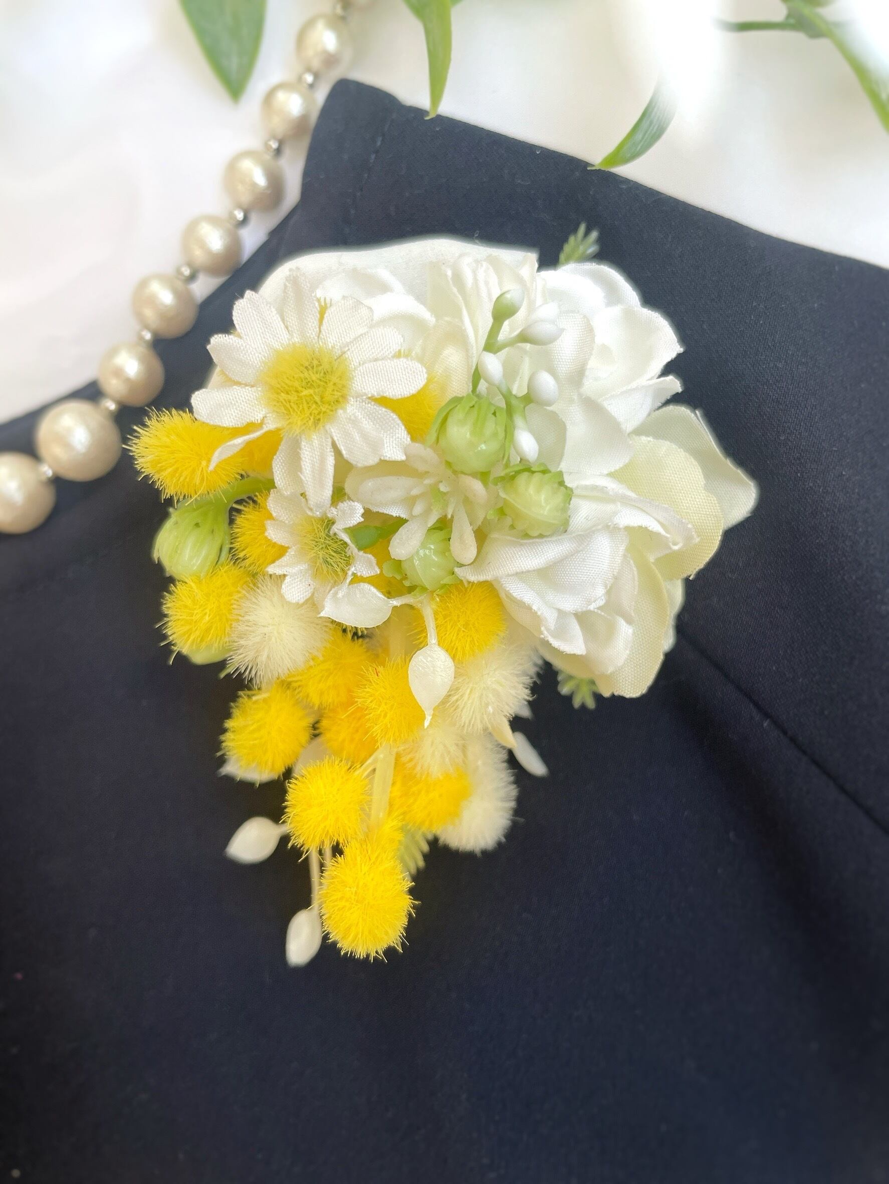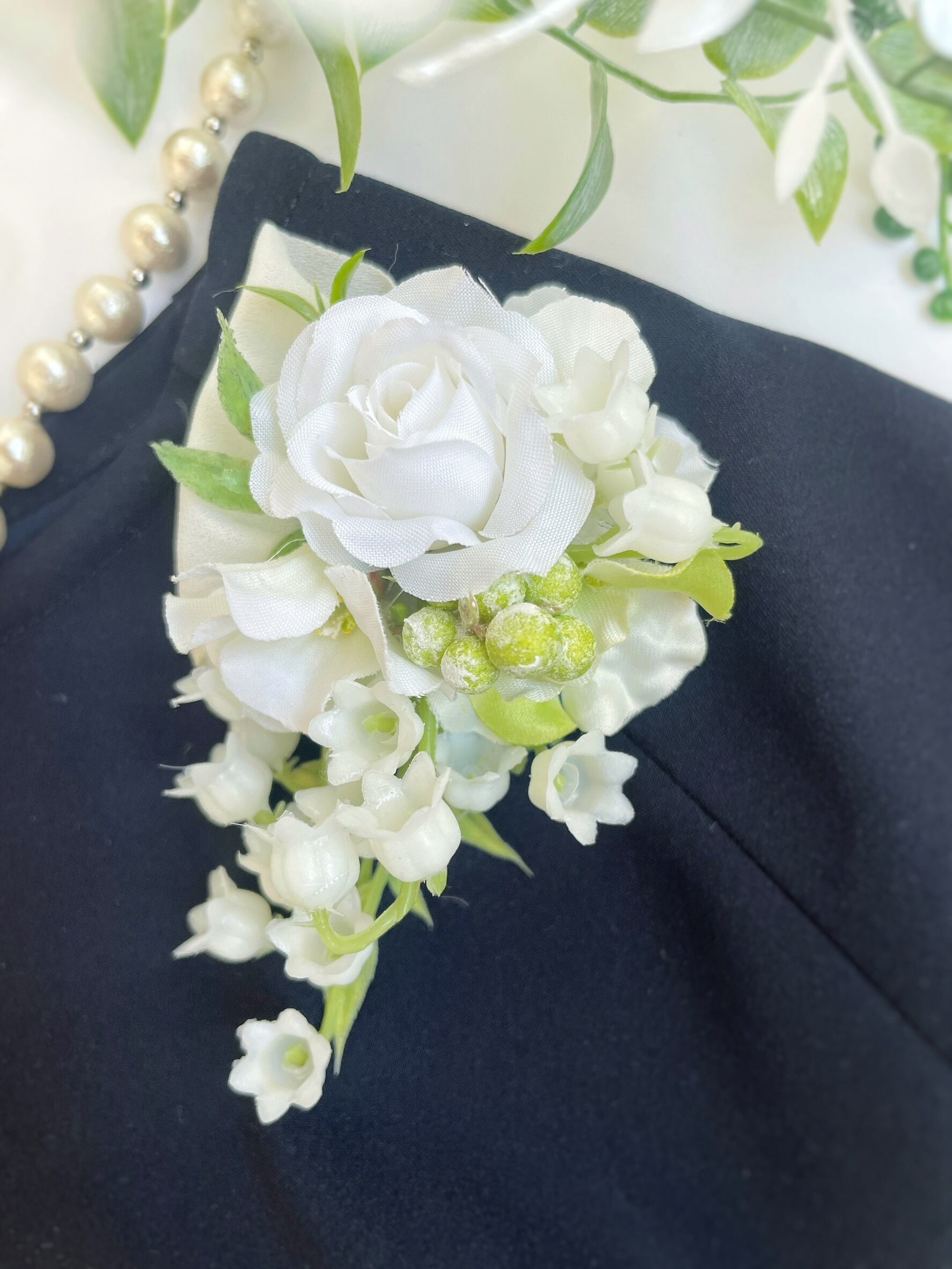 ティアドロップコサージュ(①ミモザとジャスミン②スズランとローズ)~光触媒加工~