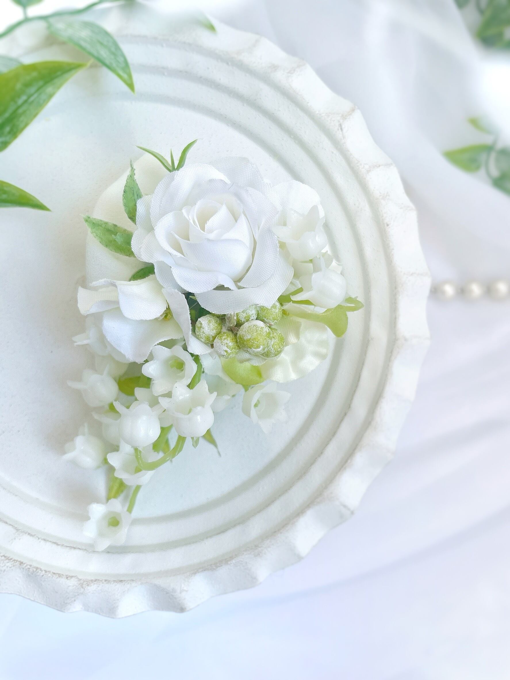 繊細なすずらんを小さなローズや小花に合わせました