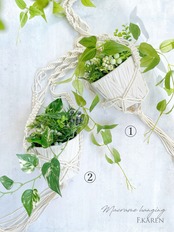 マクラメのハンギングプランター【①爽やかロング】フェイクグリーン ~光触媒加工~